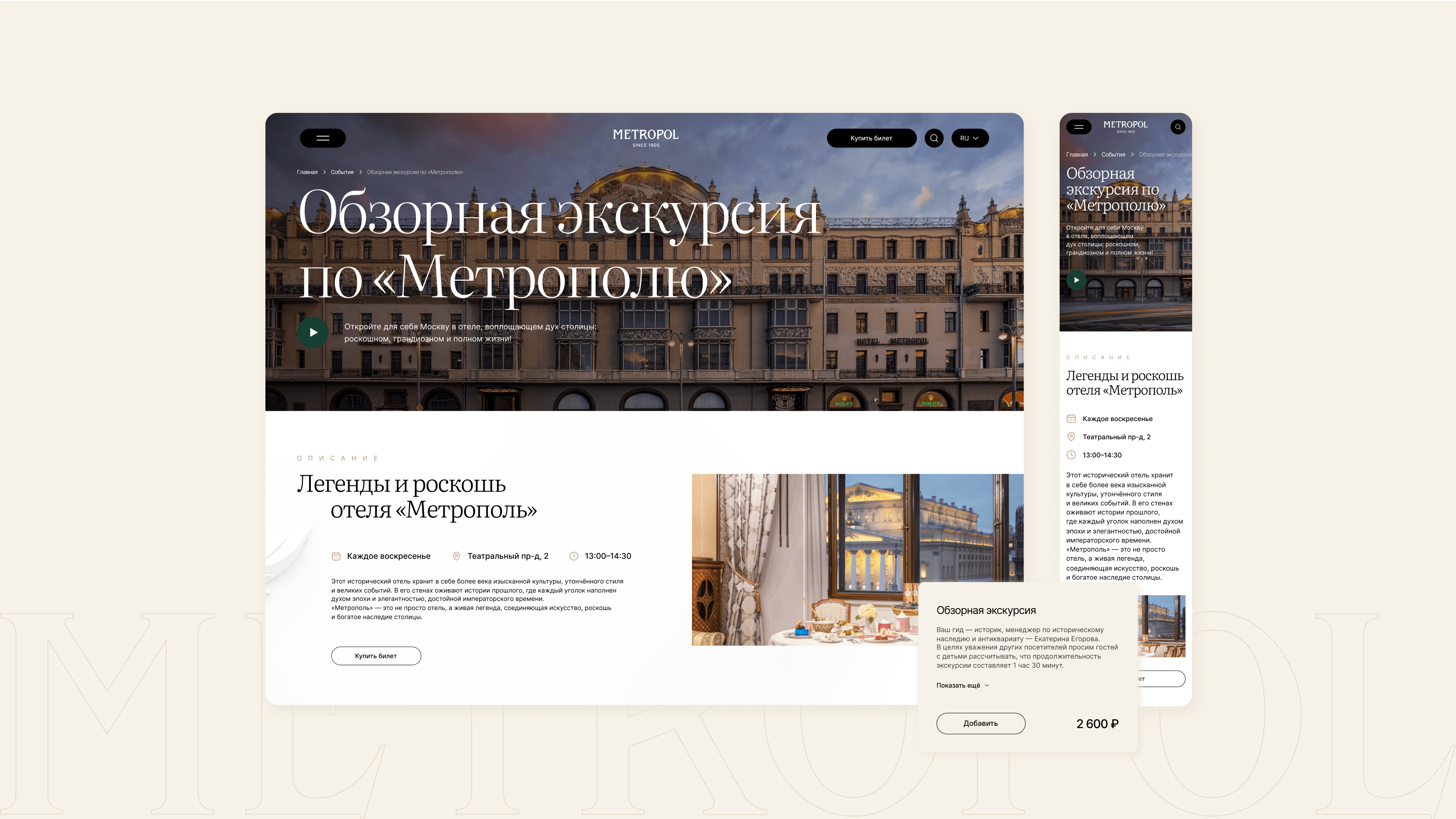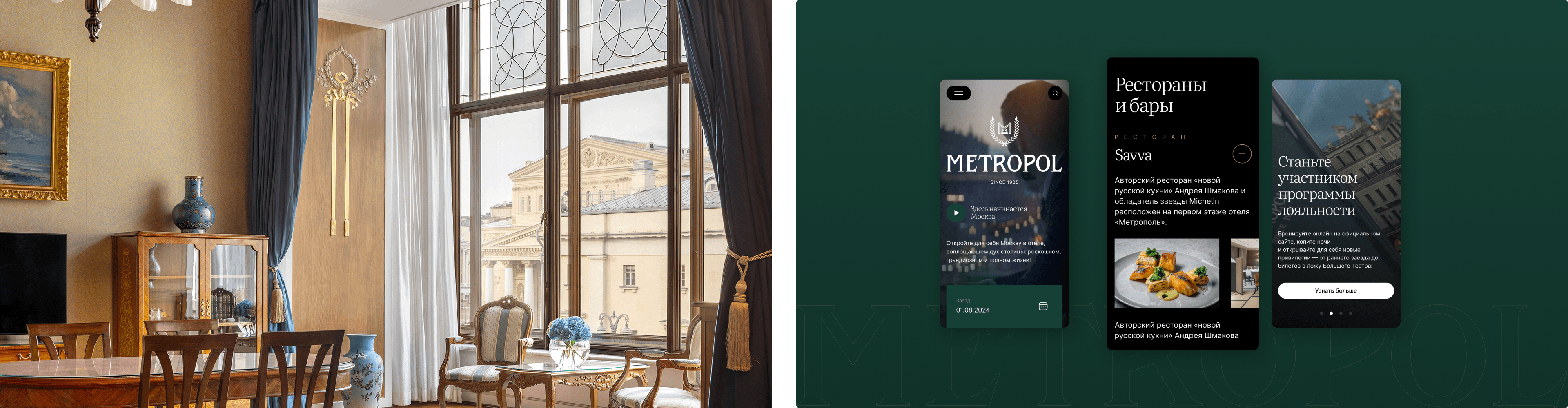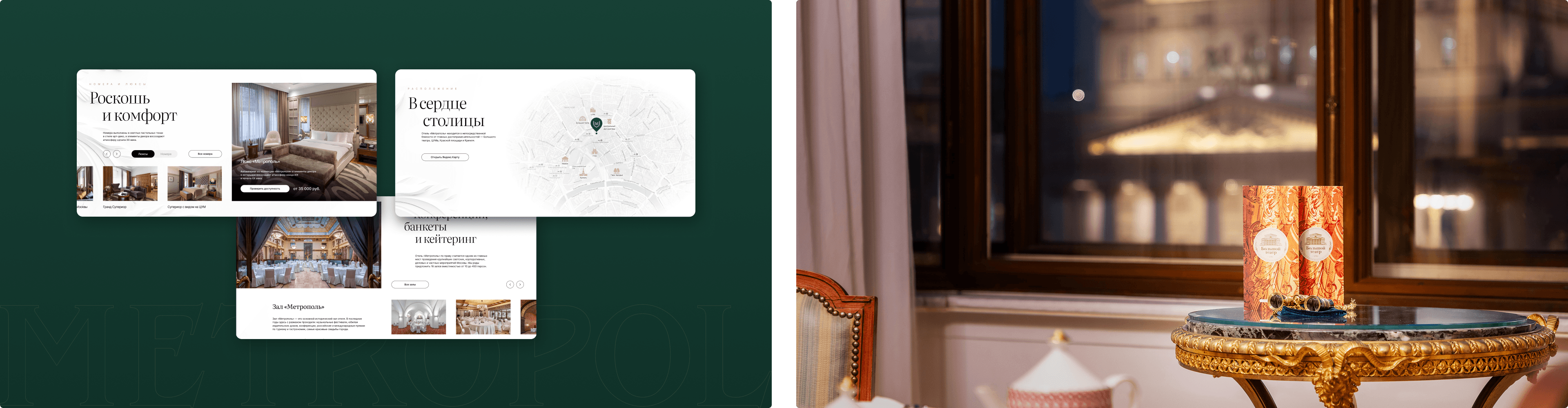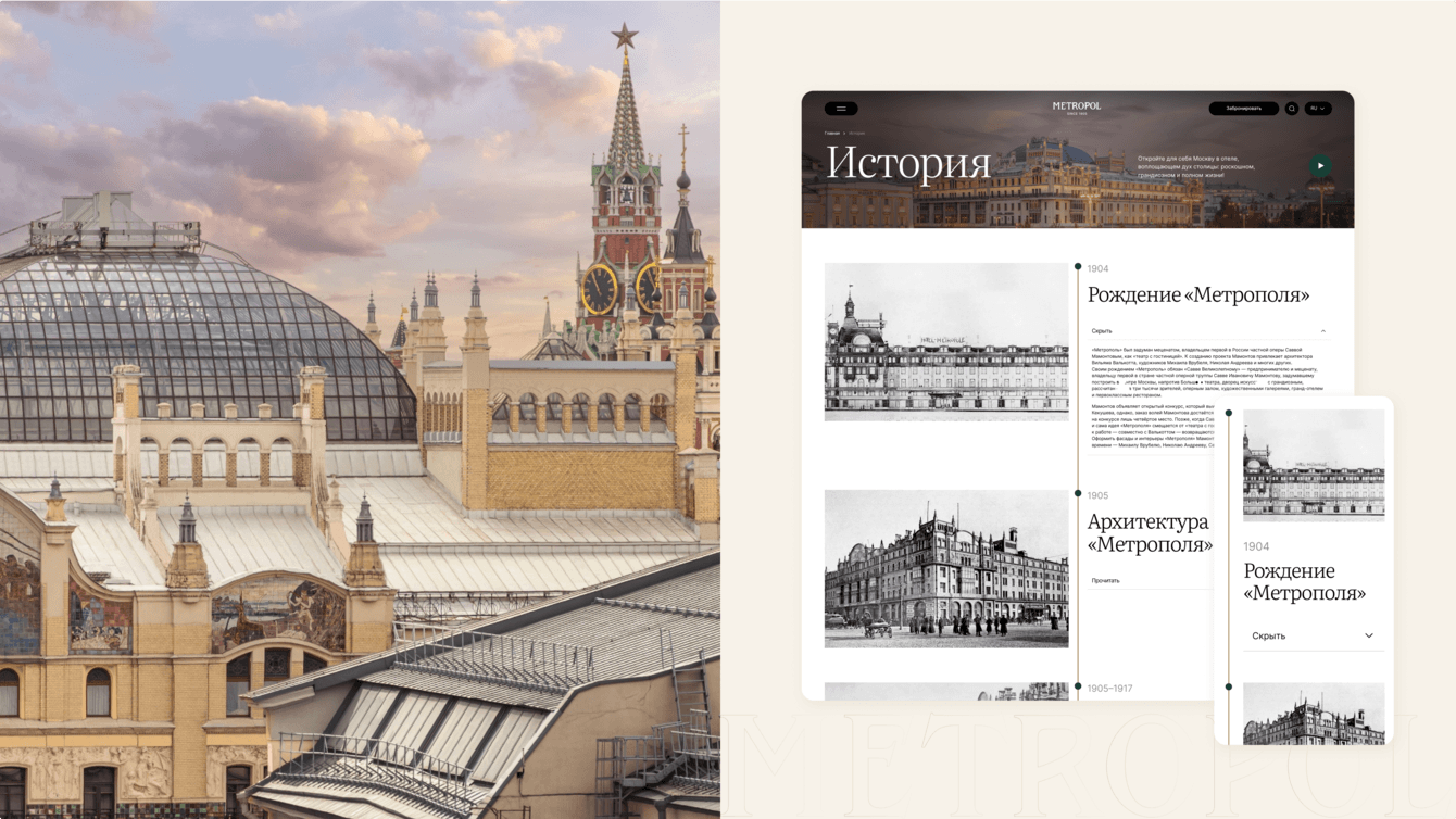 Создать digital-пространство, которое передаёт историю и эстетику «Метрополя» — непростая задача. Мы вложили максимум внимания в детали, чтобы сохранить дух легендарного отеля в каждом клике и скролле.