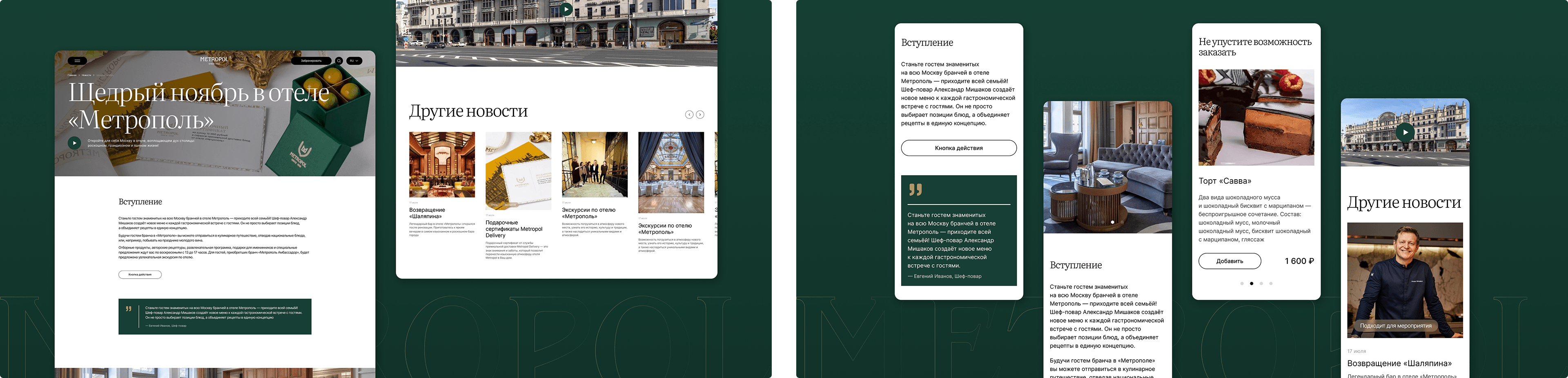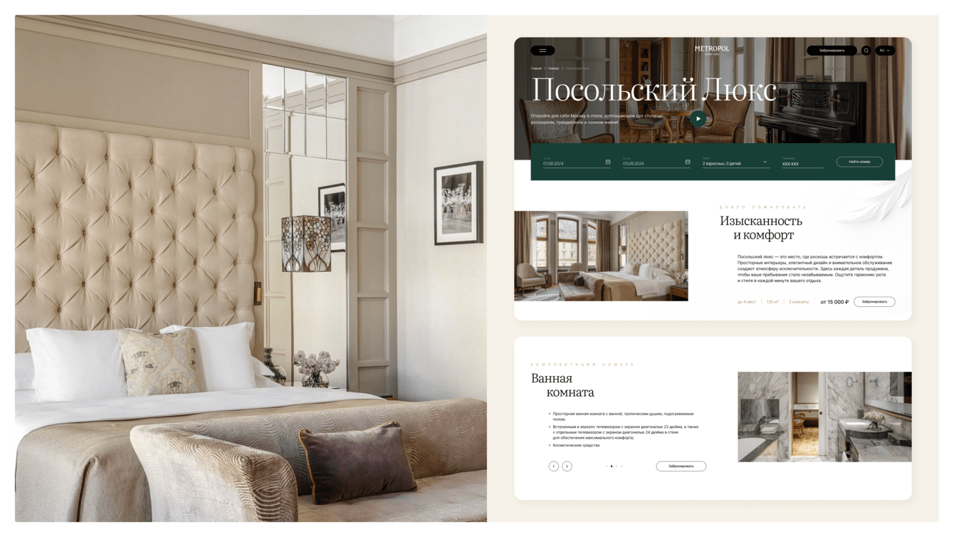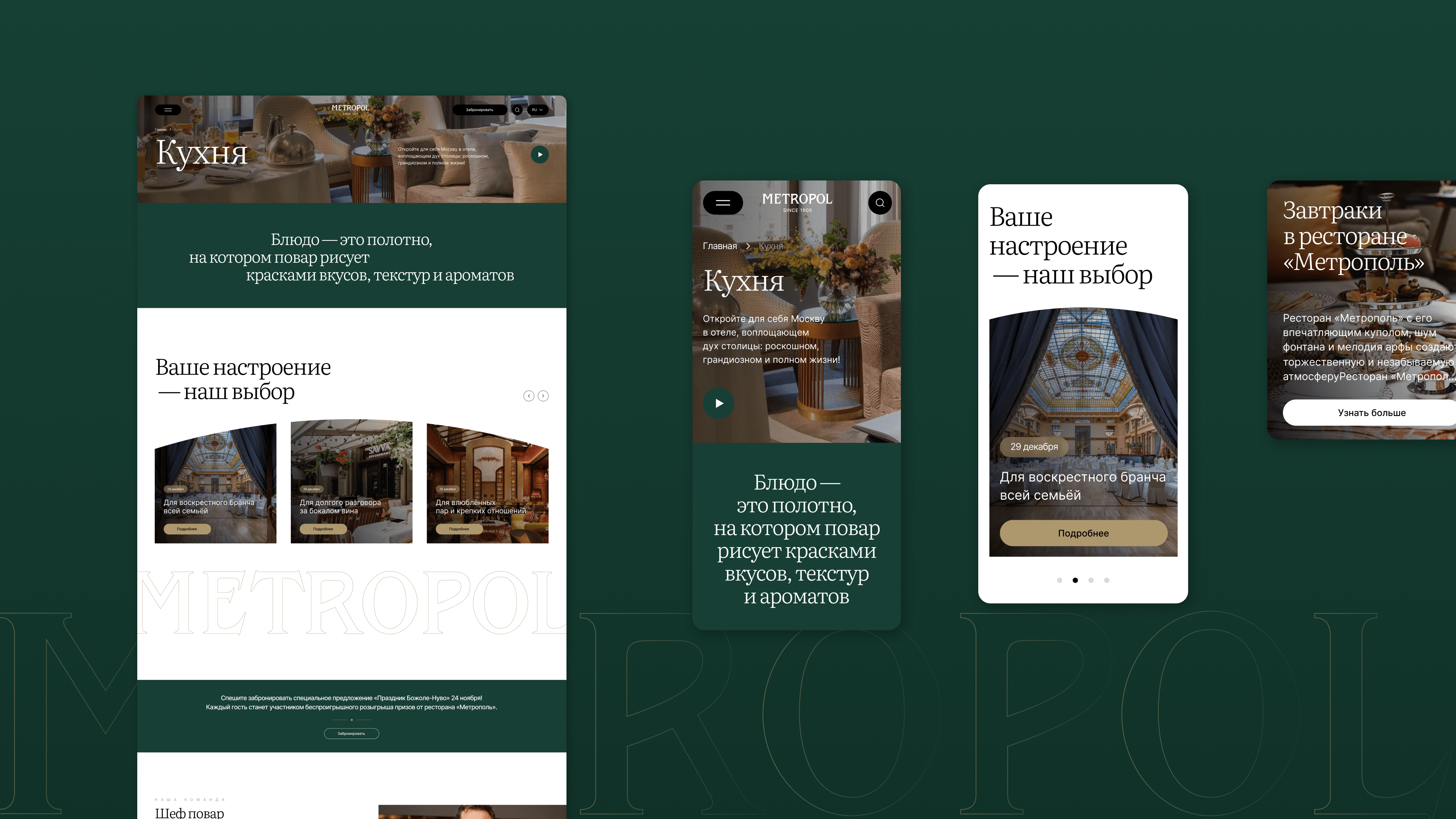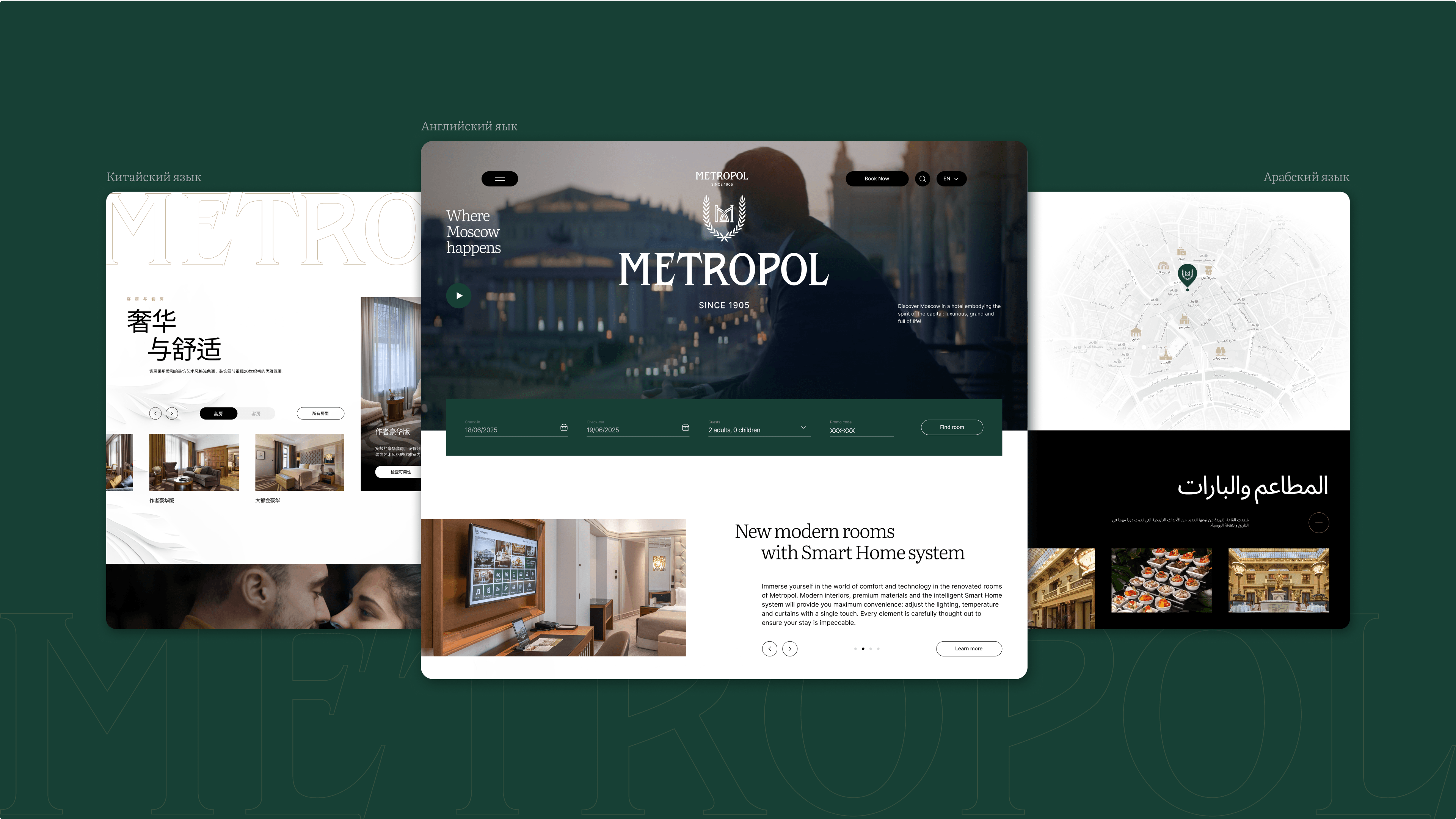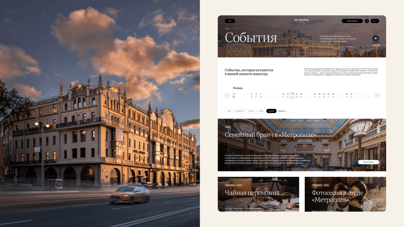 Создать digital-пространство, которое передаёт историю и эстетику «Метрополя» — непростая задача. Мы вложили максимум внимания в детали, чтобы сохранить дух легендарного отеля в каждом клике и скролле.