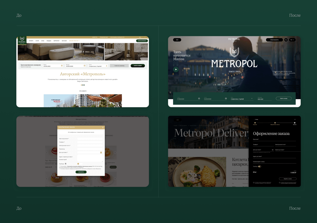 За историческими фасадами и интерьерами отеля скрываются современное оборудование и технологии, чего не скажешь о сайте, дизайн которого «застрял» в двухтысячных и перестал соответствовать уровню сервиса «Метрополя». Устаревший сайт отпугивал клиентов неудобным интерфейсом и неоптимальными решениями, например, раздел «Магазин» находился на отдельном домене.