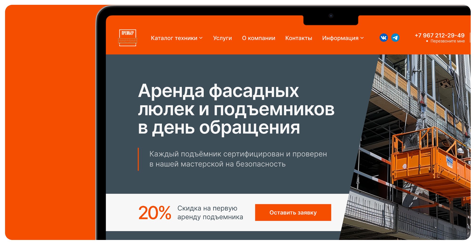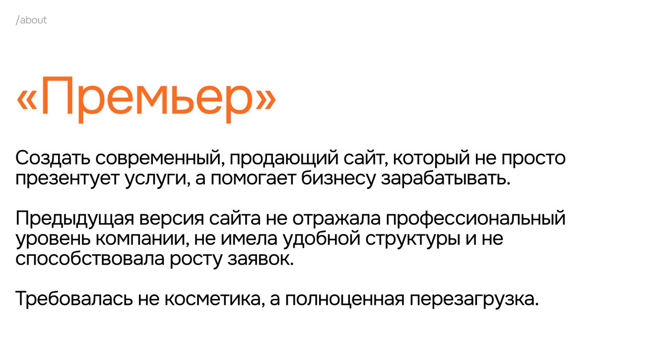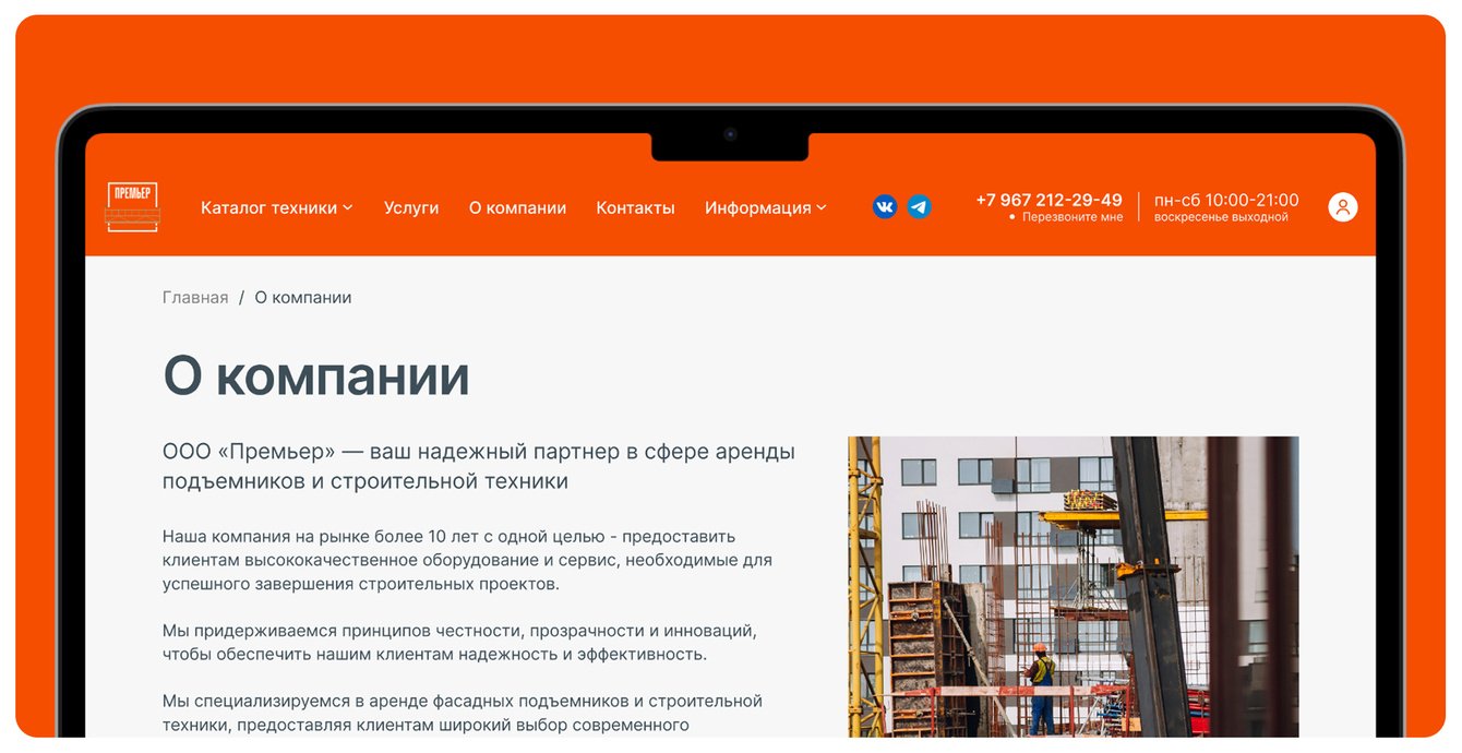 Компания Premier Rent — один из крупнейших поставщиков строительной техники в аренду по Москве и Московской области. Несмотря на сильную материальную базу, современный автопарк и отлаженные внутренние процессы, у клиента был слабый digital-фундамент. Это тормозило развитие бизнеса, мешало масштабировать продажи и оставляло «дырки» в клиентском опыте.