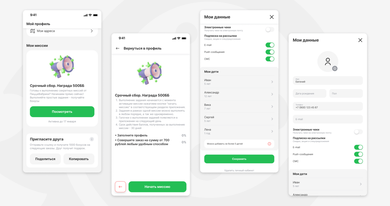 В сети семейных ресторанов ПиццаФабрика свыше 2 500 000 клиентов, которые заказывают еду и посещают заведения. При первом заказе, для пользователя создаётся личный кабинет, который привязывается к его номеру телефона.
