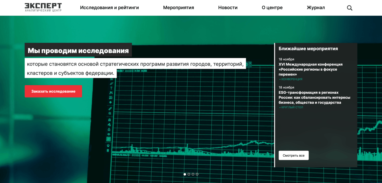 АЦ «Эксперт» — аналитическое подразделение. Проводят мероприятия с общероссийскими и мировыми экспертами, а также делают исследования на заказ.