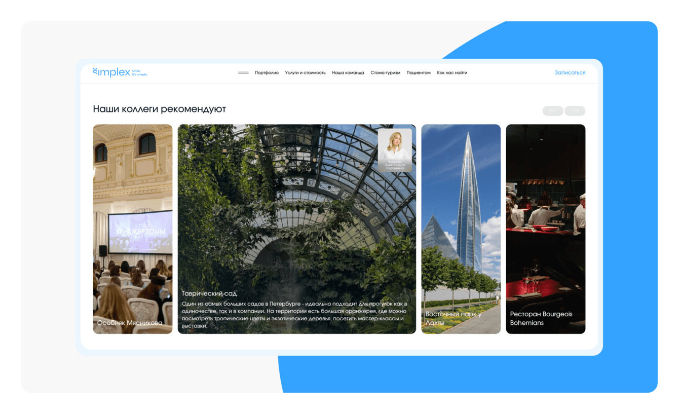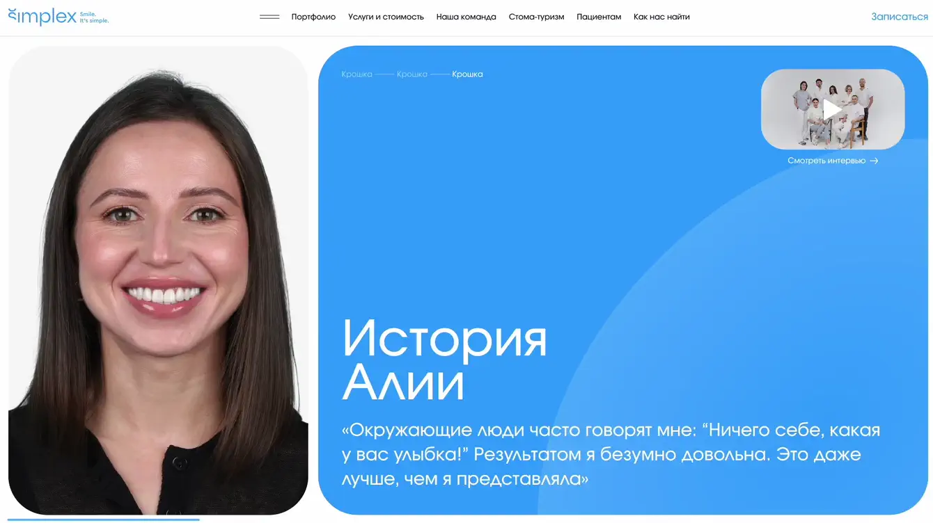 Simplex — это не просто стоматология, это законодатель мод в медицине! Предыдущую версию сайта мы запустили в 2018 году. Мы знаем, что этот сайт долгое время был ориентиром для конкурентов. Планка была задана достаточно высокая, поэтому к моменту обновления задача усложнилась. Делать работу под пристальным взглядом доброй половины рынка — это совсем иной уровень ответственности.
