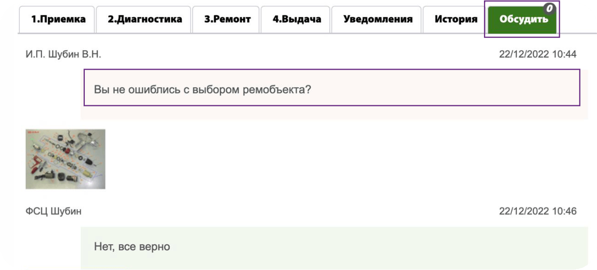 В каждом заказе, представитель определенной группы может вести диалог по поводу ремонта с другим участником. У каждой группы свой уровень допуска