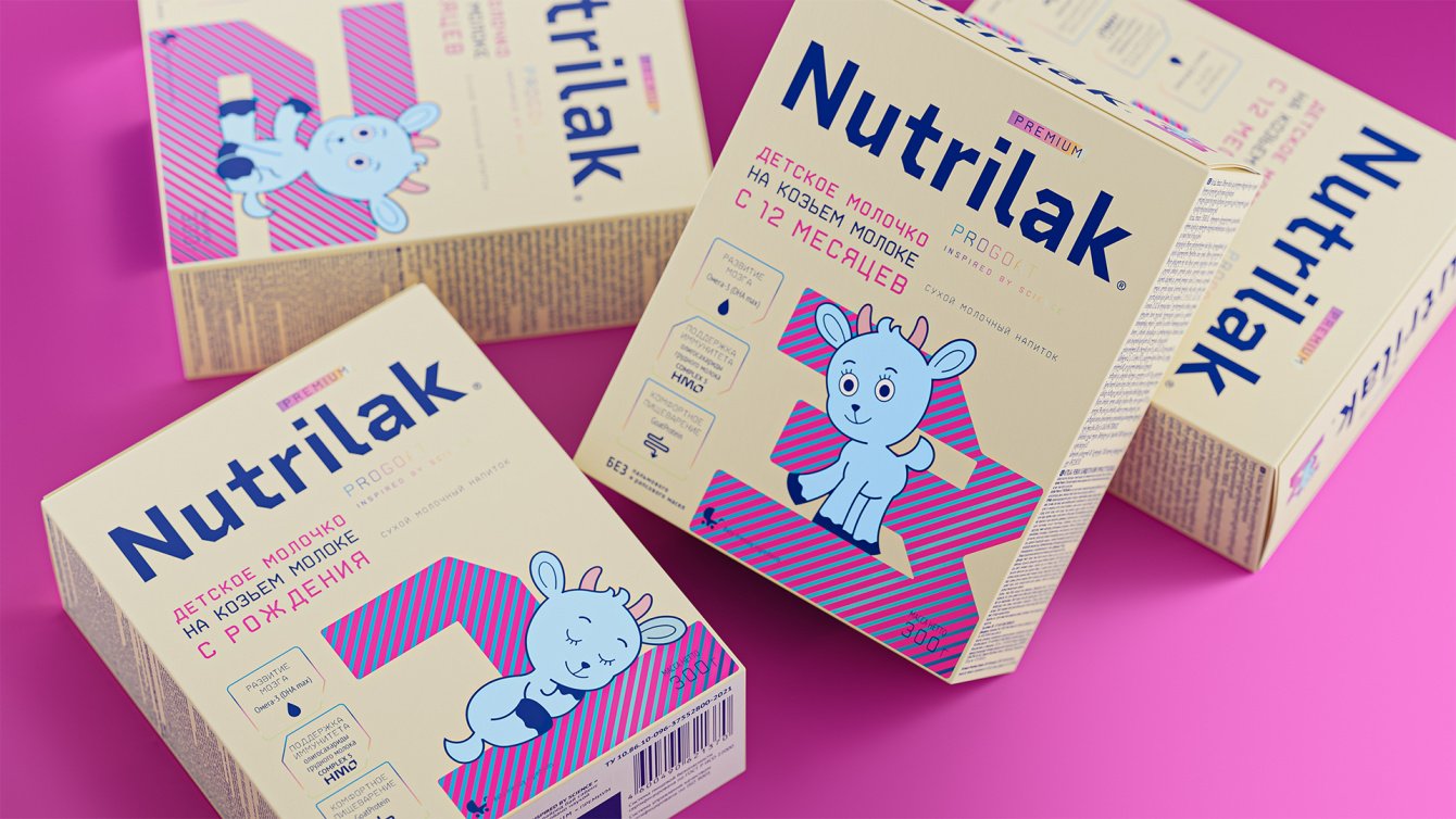 Перед нашей командой стояла задача провести адаптацию текущего дизайна Nutrilak Premium для новой линейки смесей на козьем молоке, а также отрисовать бренд-персонажа.
