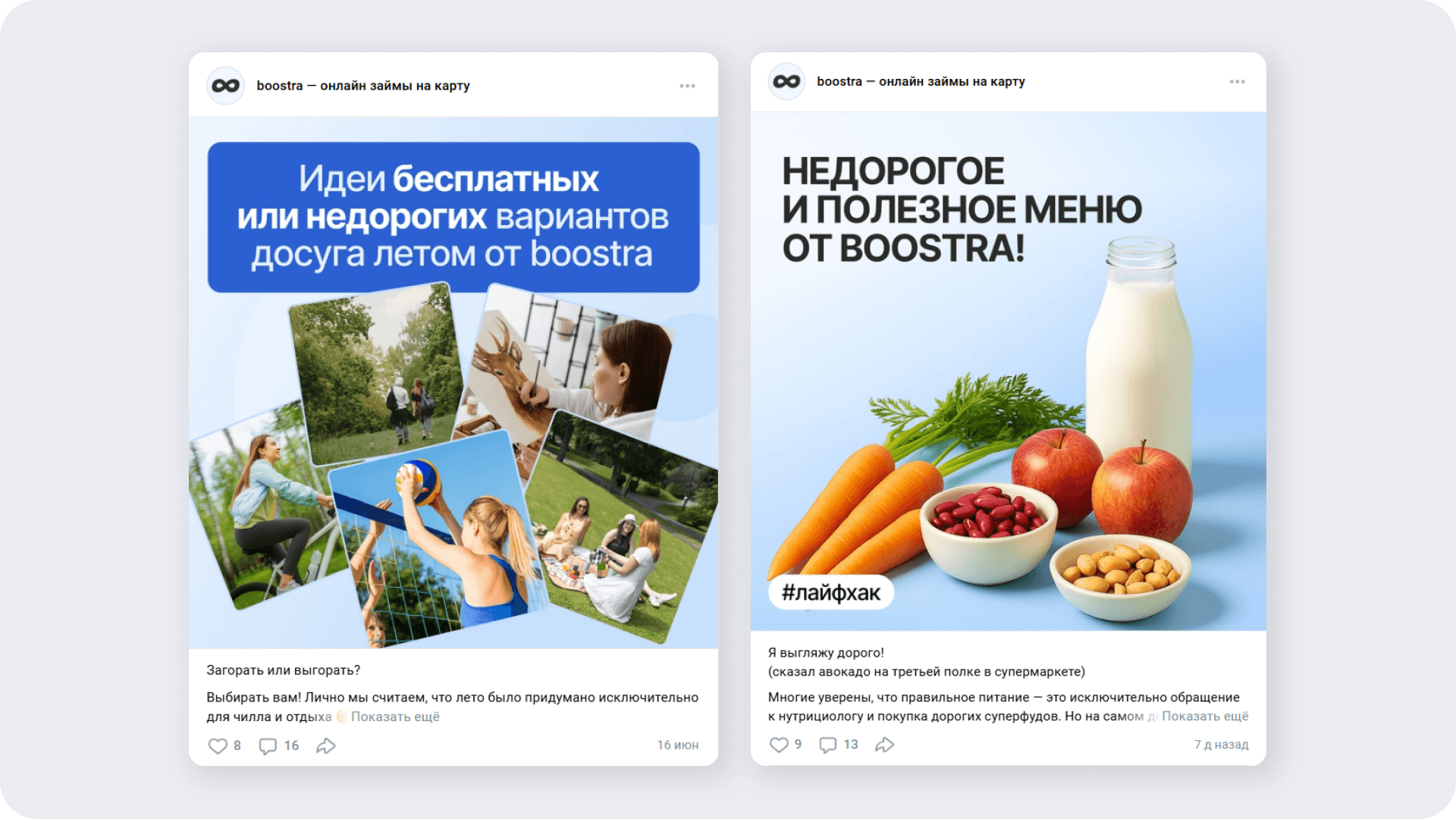 Полезные посты. Мы не раскрывали темы финансовой грамотности, инвестиций и заработка. Но рассказывали о том, как можно бесплатно или недорого отдохнуть, на чём и как можно сэкономить. Нехватка финансов — основная проблема нашей аудитории, но запроса изменить её нет, поэтому тема экономии была востребованной.