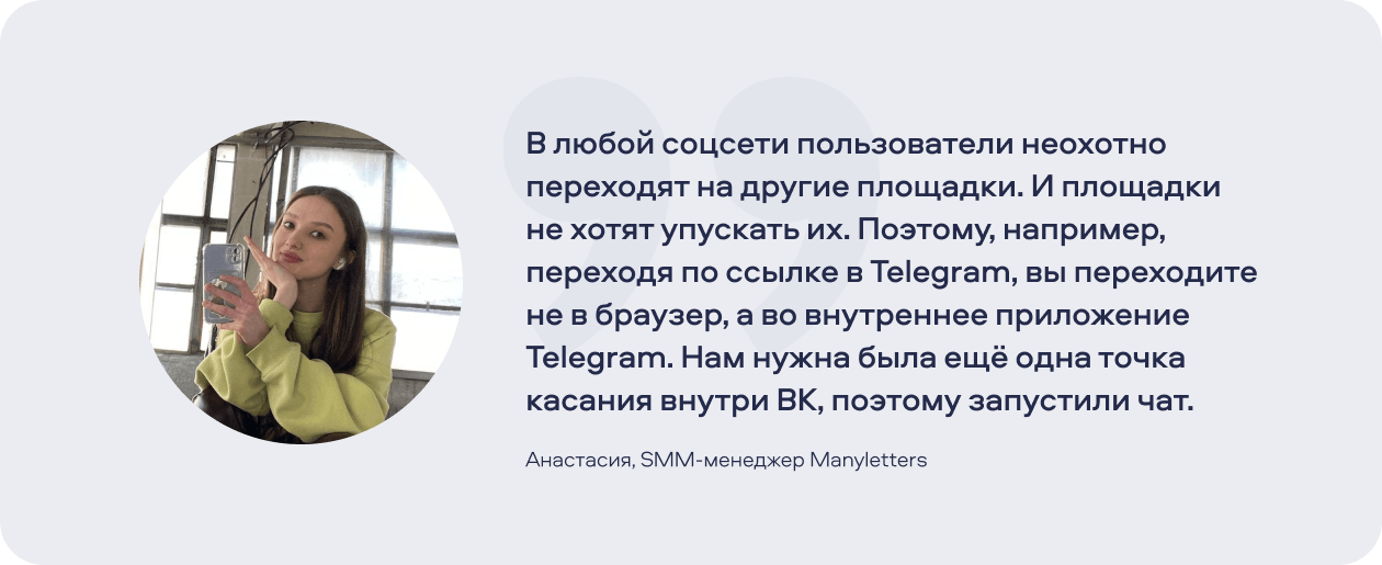 Выбрали наиболее релевантные площадки для ведения коммуникации — ВКонтакте и Telegram.