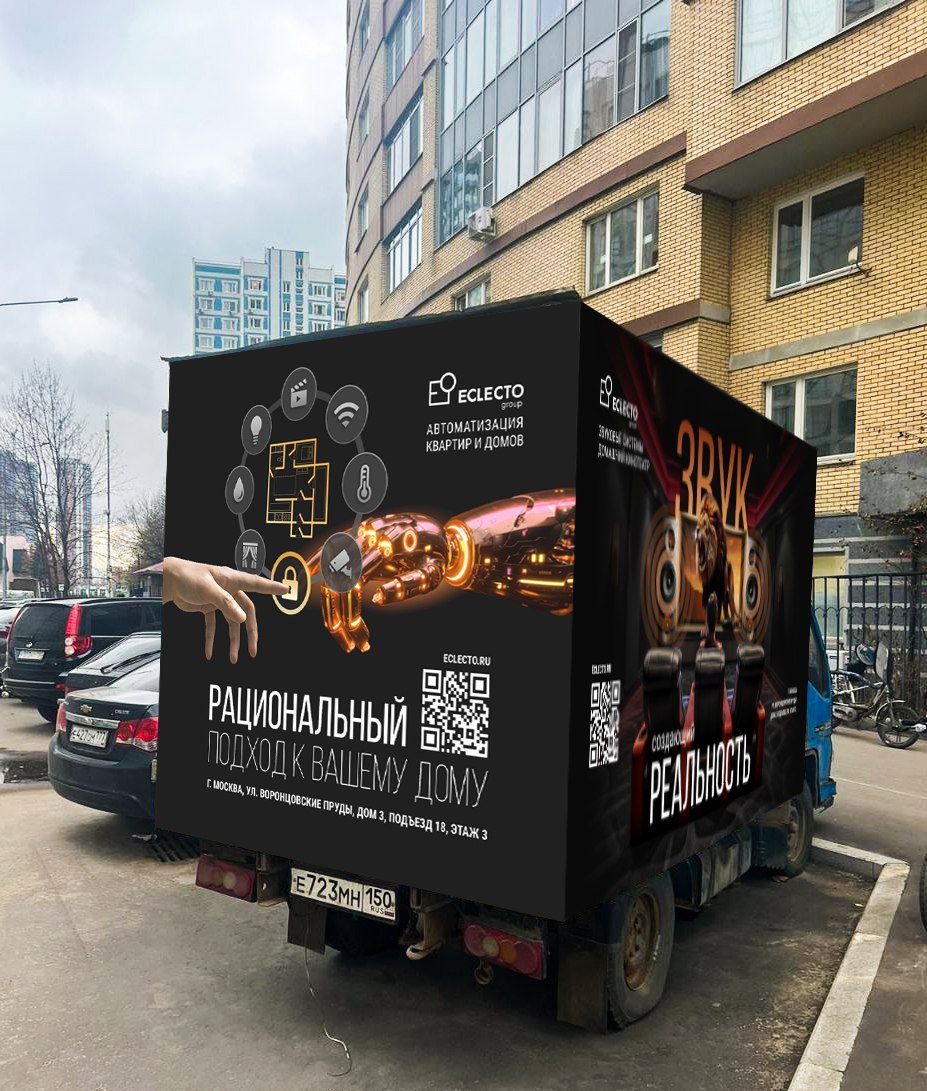 Запросили у заказчика информацию где именно и на каком автомобиле будет размещена реклама. Проанализировали район и аудиторию, которая будет видеть нашу работу. Также попросили заказчика рассказать портреты целевой аудитории Fabli & Eclecto (T15Project).