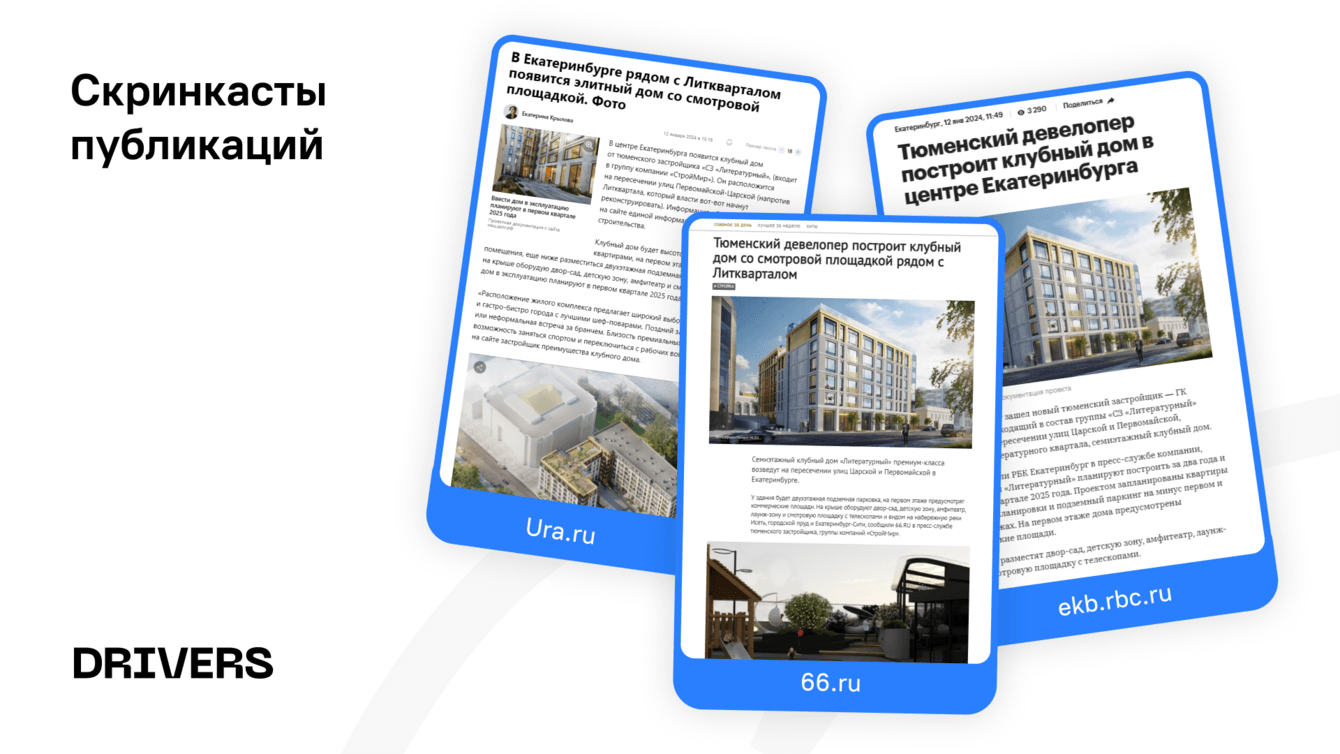 Для усиления кампании использовали серию нативных публикаций — тексты с акцентом на ценности проекта: бережное отношение к истории, архитектурный язык, локальный контекст. Коммуникация строилась вокруг темы уважения к городу и сохранения его культурного кода — без конфликтных или защитных формулировок.