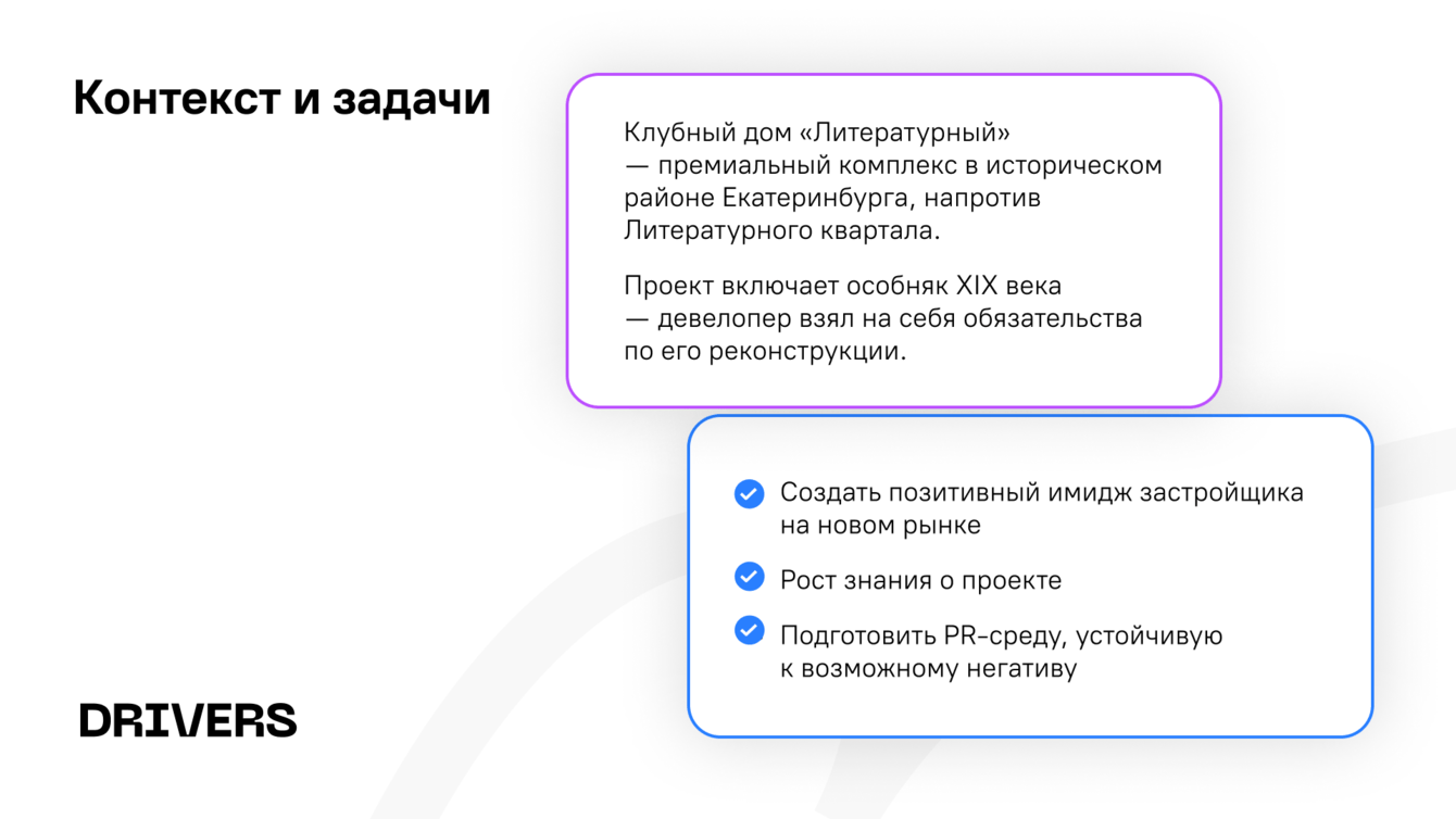 С другой стороны, были и риски. Проект запускался в медийно-чувствительной среде: Екатеринбург известен активным городским сообществом и внимательными к архитектуре жителями, а местные медиа традиционно остро реагируют на любые изменения в исторической застройке. Поэтому коммуникации требовали особенно взвешенного подхода и заранее выстроенной стратегии.