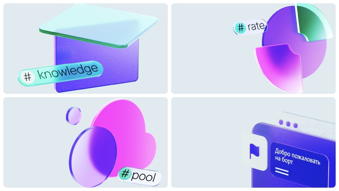 Также мы разработали гибкий стиль визуальных элементов для внутренних сервисов: иконки и пиктограммы словно «растут» вместе с пользователем — от простых 2D-образов до сложных 3D-визуализаций, что подчёркивает развитие и масштабируемость решений компании.