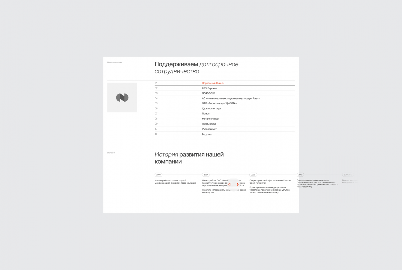 На самом старте проекта клиенты попросили нас использовать как можно меньше шаблонных решений и клишированных форматов. Поэтому наш дизайн сильно ушел от “классического” для инжиниринговых компаний вида и формы.