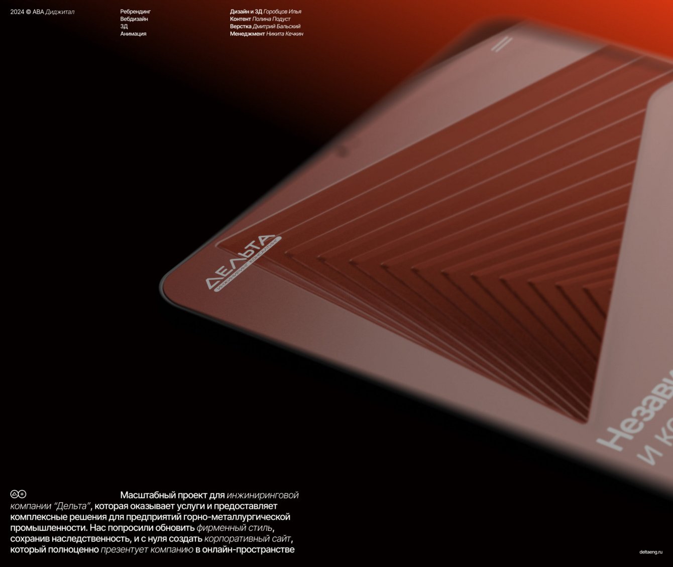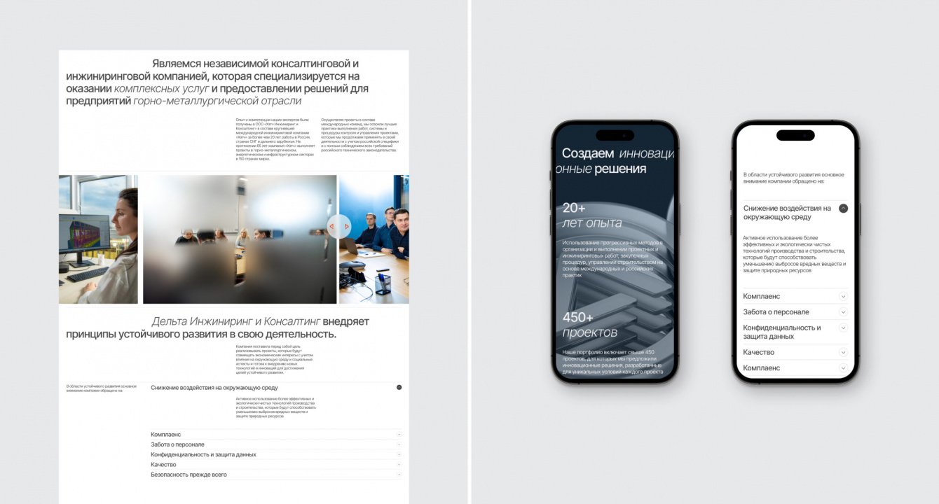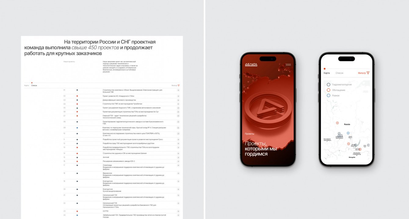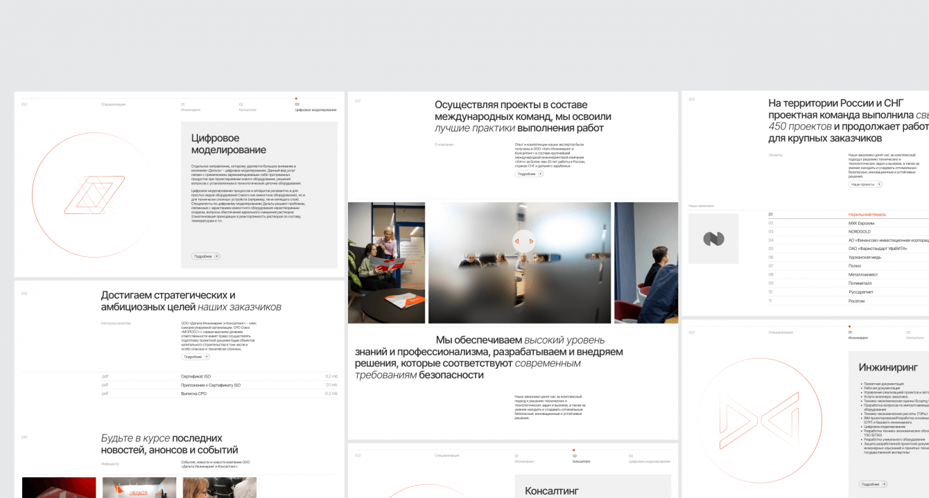 Масштабный проект для инжиниринговой компании “Дельта”, которая оказывает услуги и предоставляет комплексные решения для предприятий горно-металлургической промышленности. Нас попросили обновить фирменный стиль, сохранив наследственность, и с нуля создать корпоративный сайт, который полноценно презентует компанию в онлайн-пространстве.