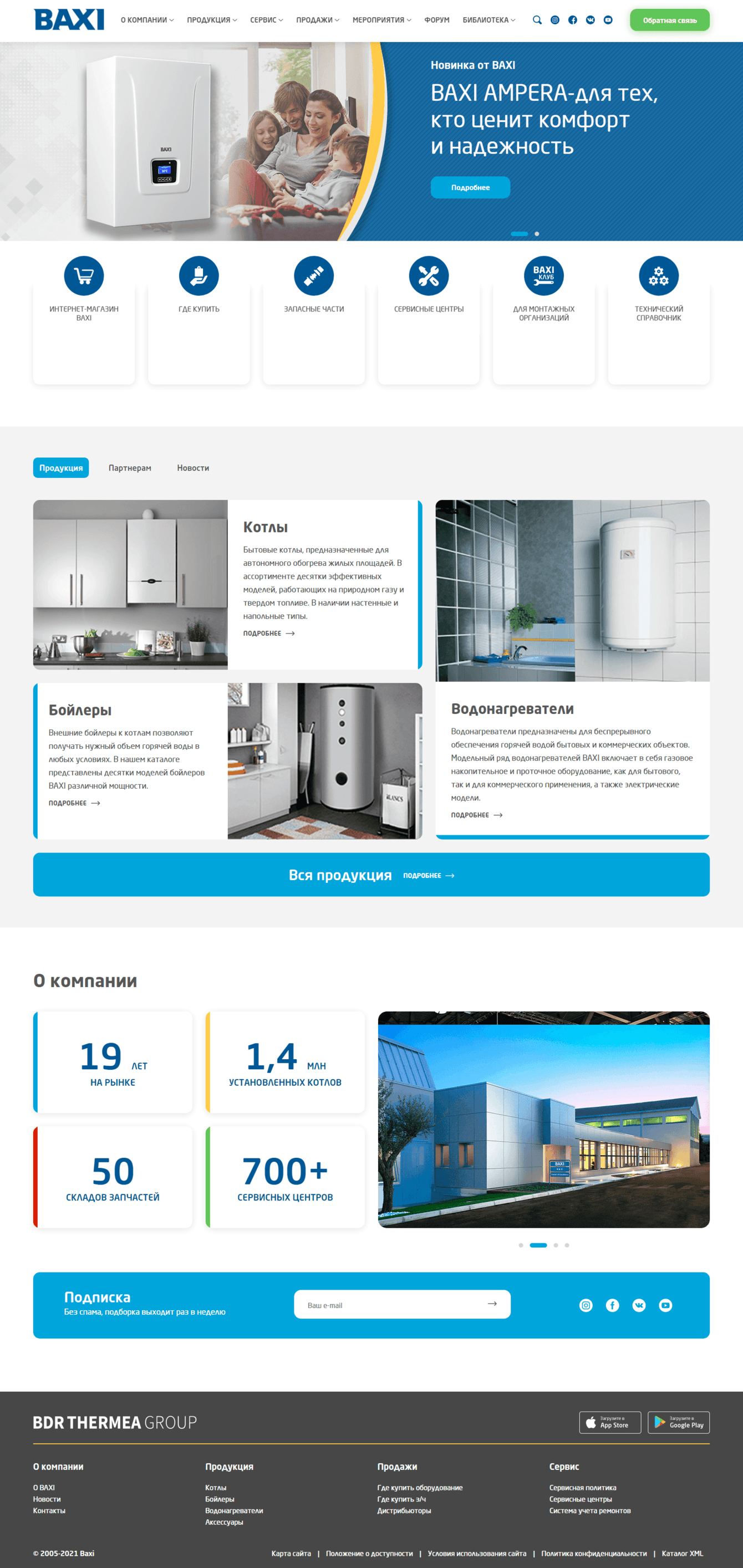 В данный момент сайт производителя BAXI имеет фирменный узнаваемый дизайн, увеличил продажи готовой продукции.