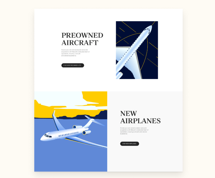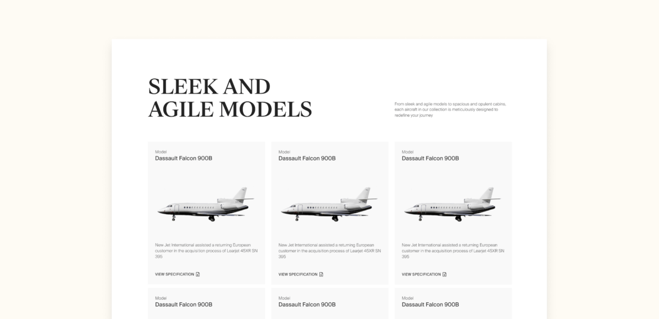 Полная модернизация устаревшего сайта компании по продаже частных самолетов премиум-класса. Нужно было улучшить визуальное восприятие, добавить новый функционал: каталог самолетов с PDF-спецификациями и отслеживанием скачиваний, обновление статусов; повысить удобство использования, особенно на мобильных устройствах.