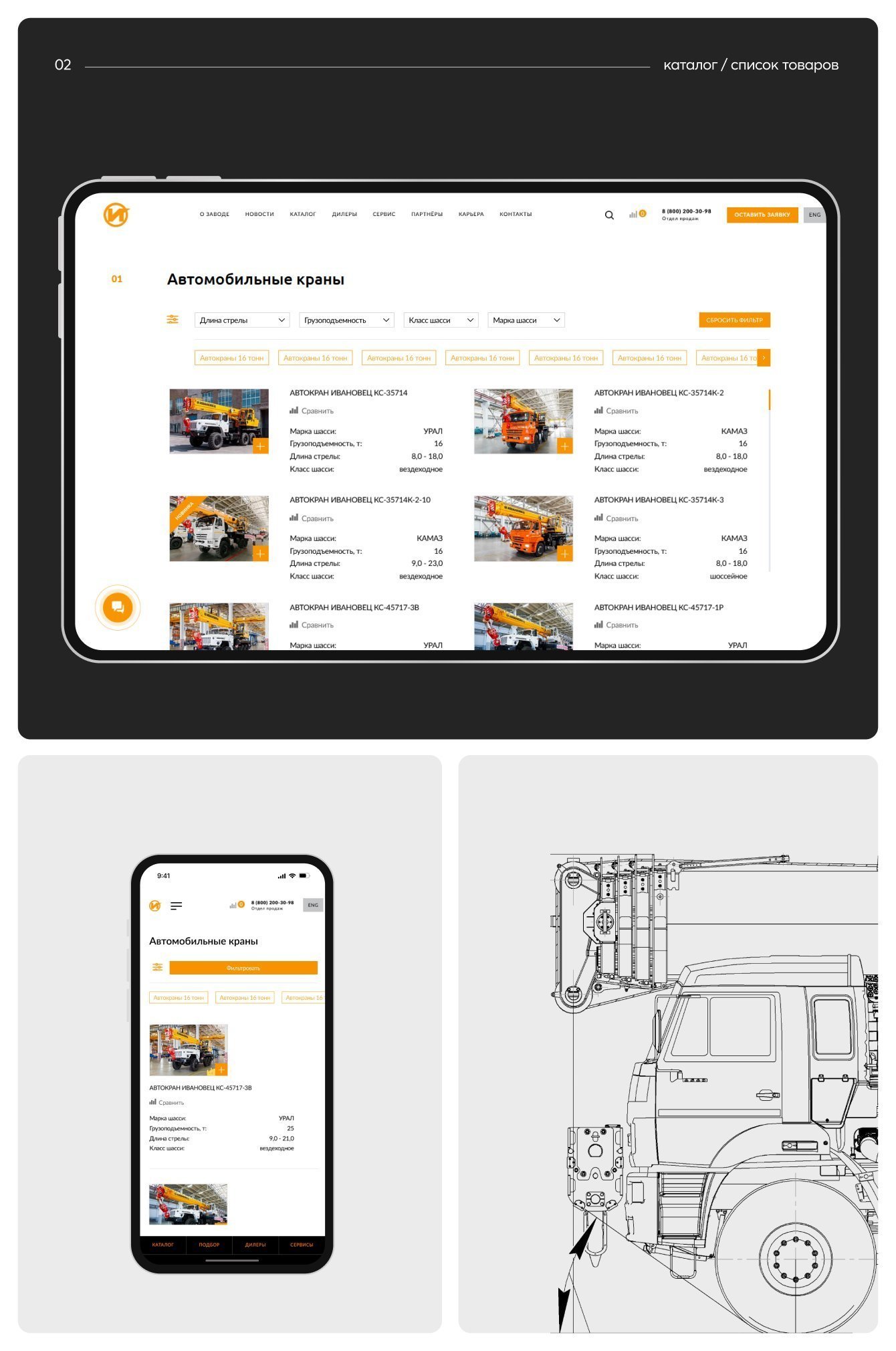 Мы учли потребности опытных пользователей и разработали расширенный каталог автокранов с возможностью удобной фильтрации. Теперь каждая модель автокрана представлена фотографиями и основными параметрами, чтобы клиенты могли получить полное представление о каждом продукте.