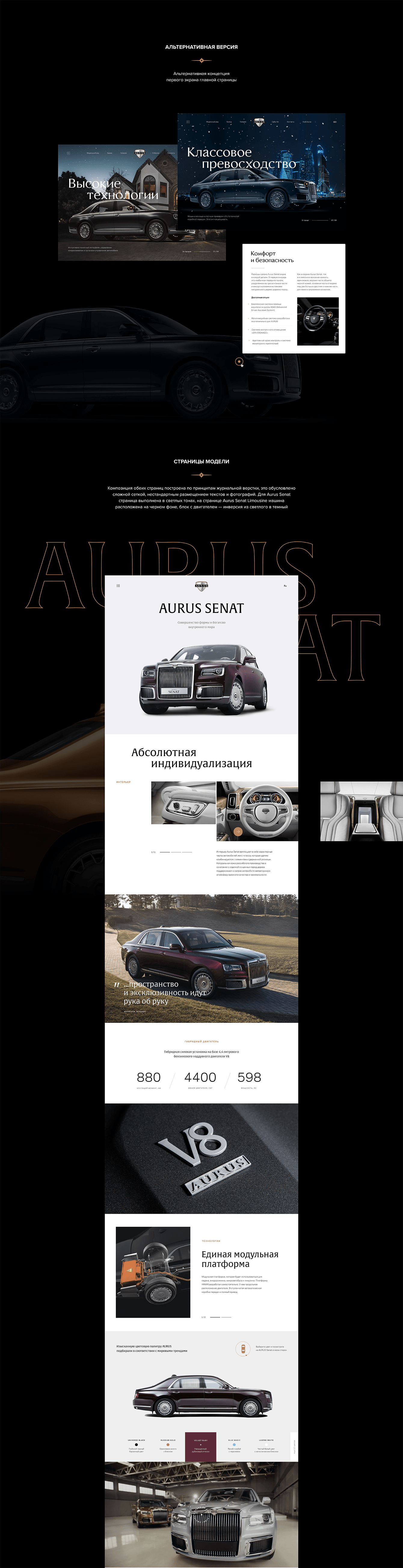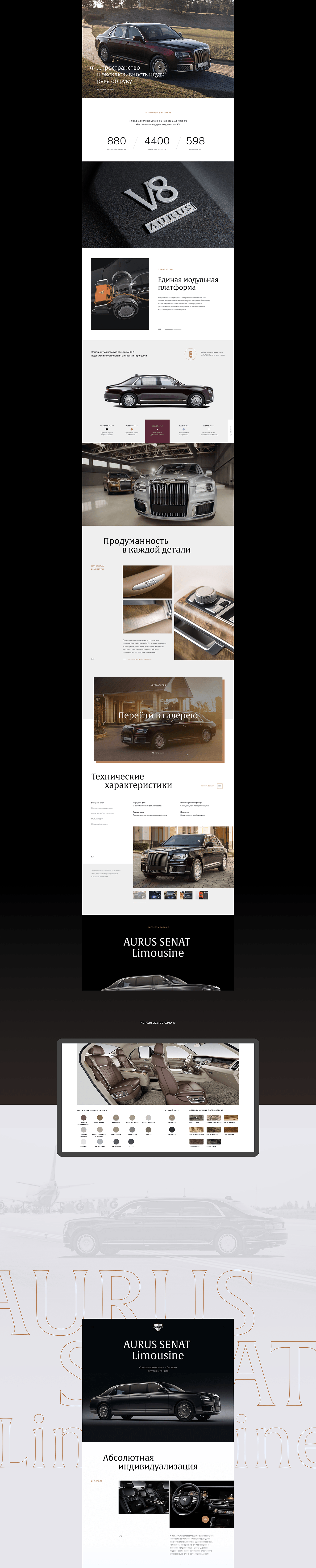 Альтернативная версия первого экрана, страницы модели Aurus Senat:
