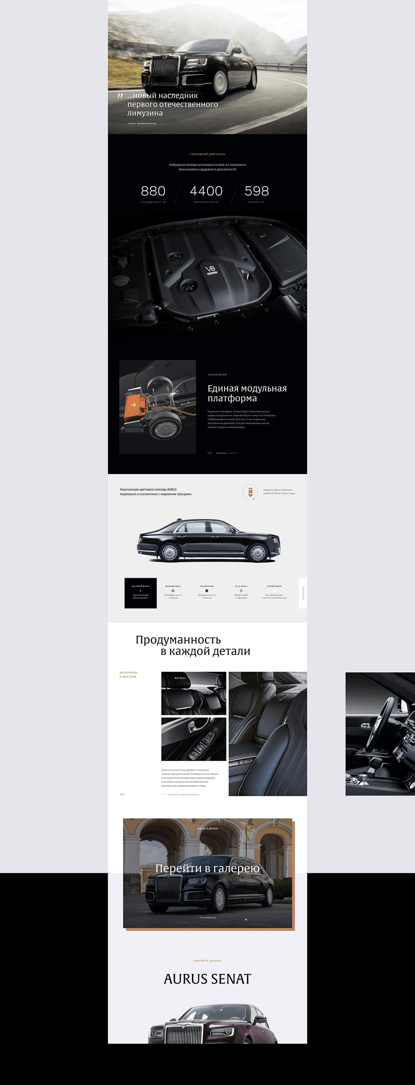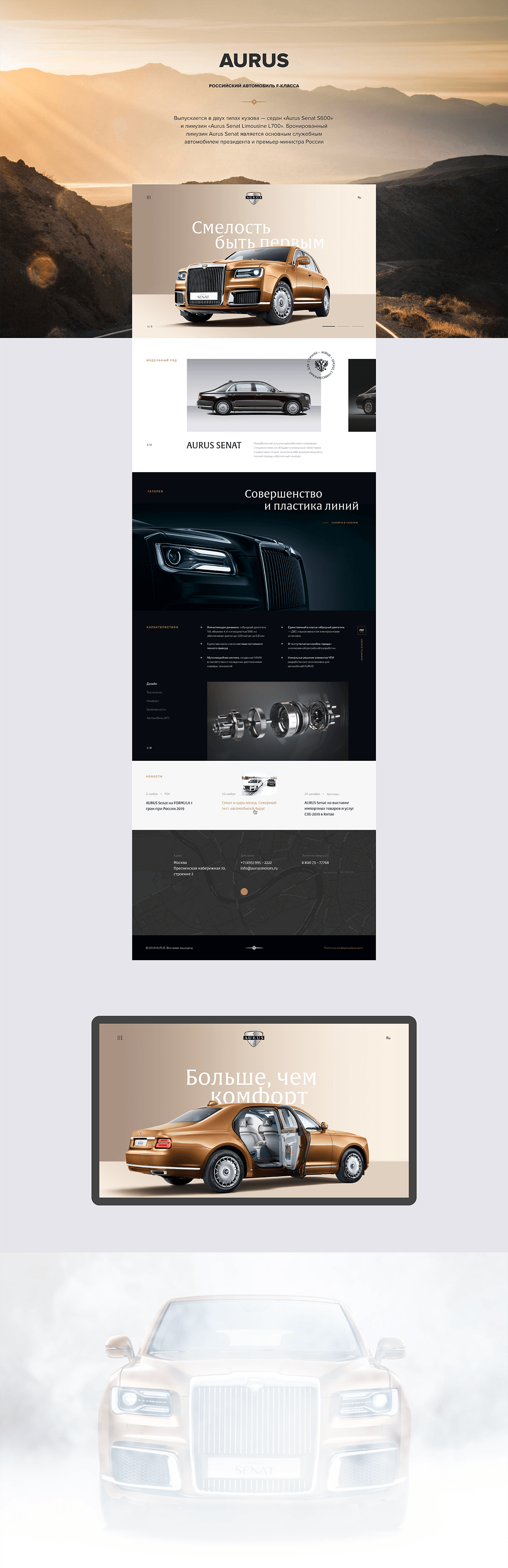 В результате мы создали современный, эффектный, а главное — отражающий дух компании, официальный сайт. На нем можно узнать все об уникальном автомобиле AURUS, записаться на тест-драйв, сделать заказ.