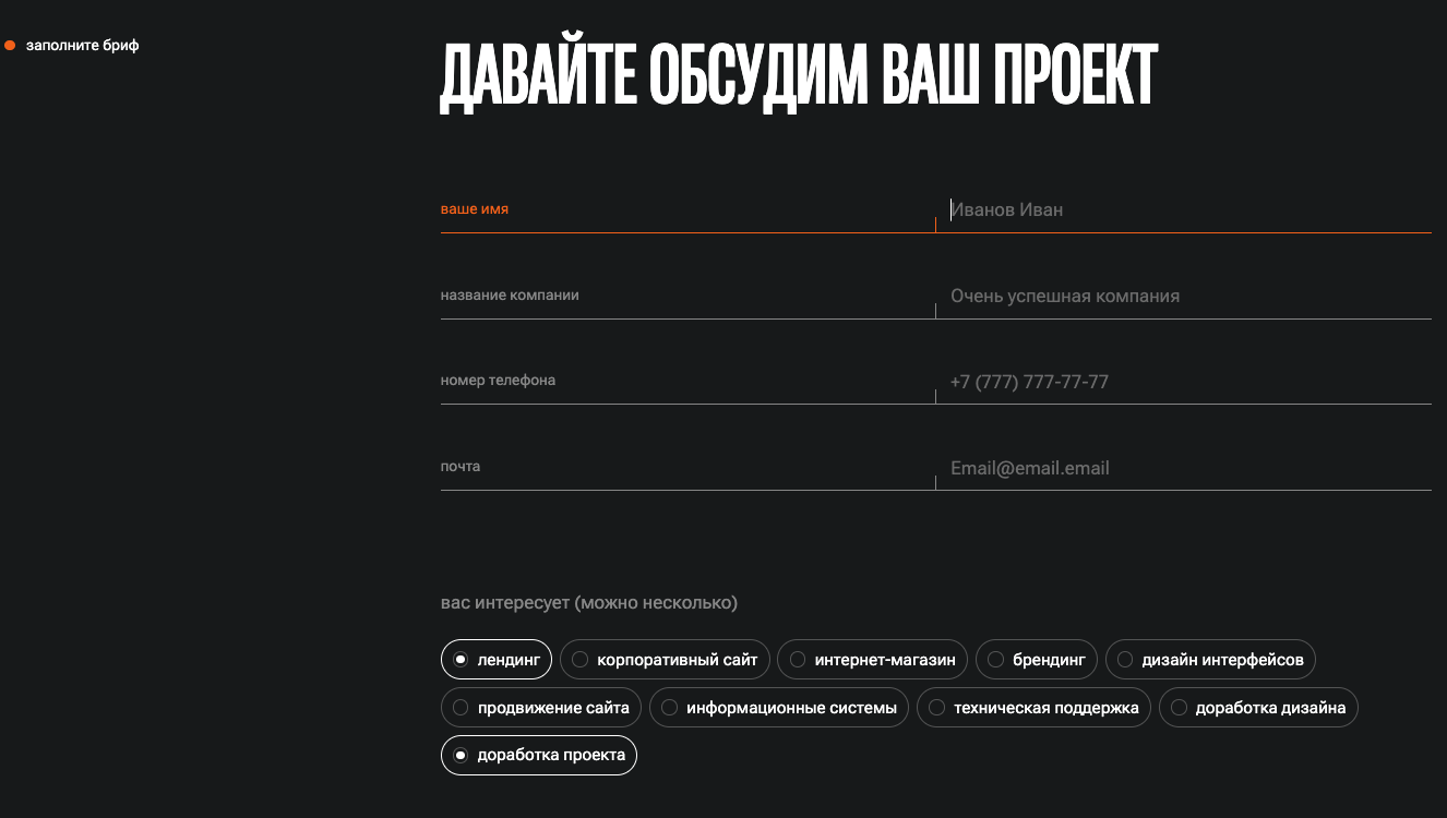 сделать необычный короткий сайт для описания собственных услуг