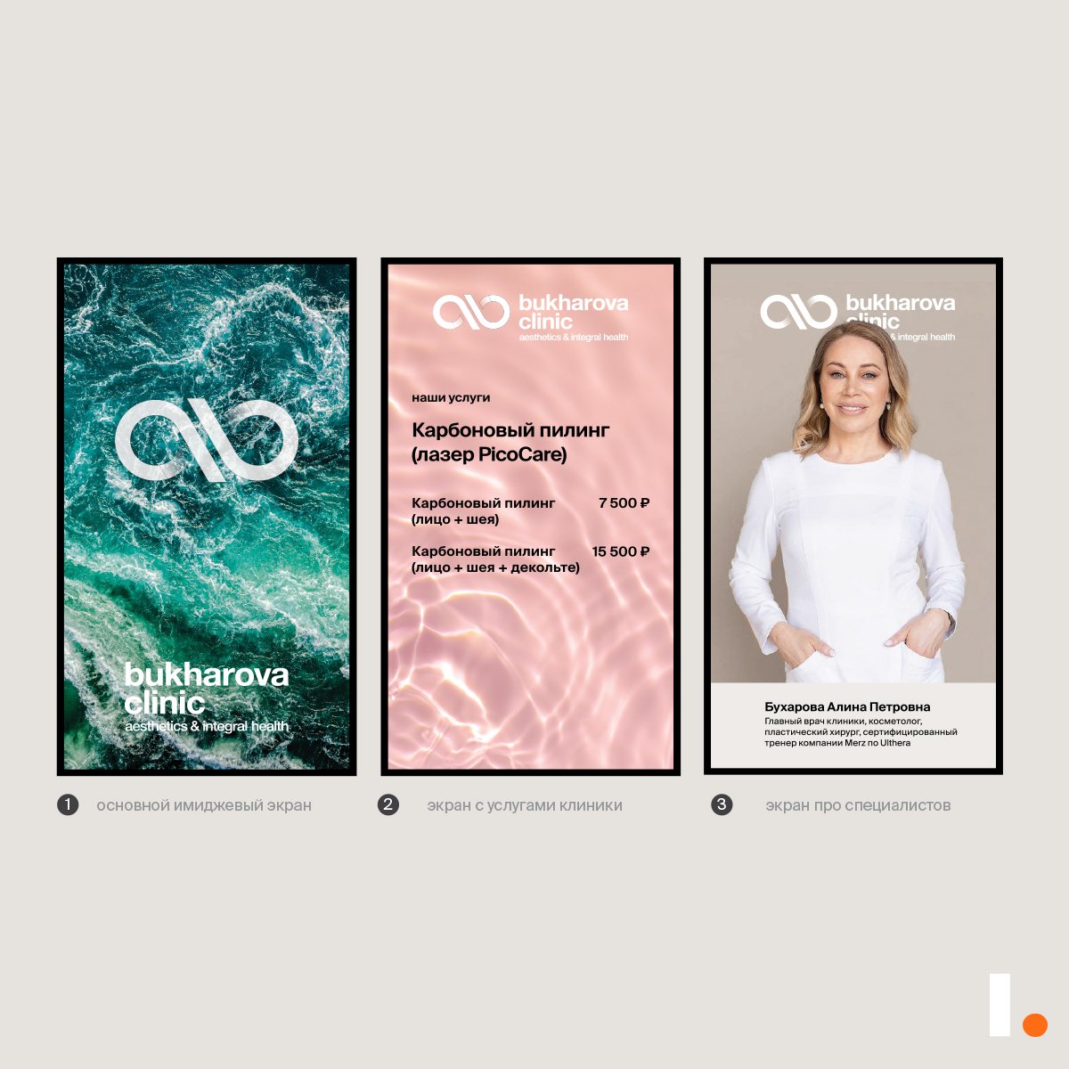 Обновление визуального стиля Клиники Алины Бухаровой в рамках нового позиционирования компании и открытия нового центра