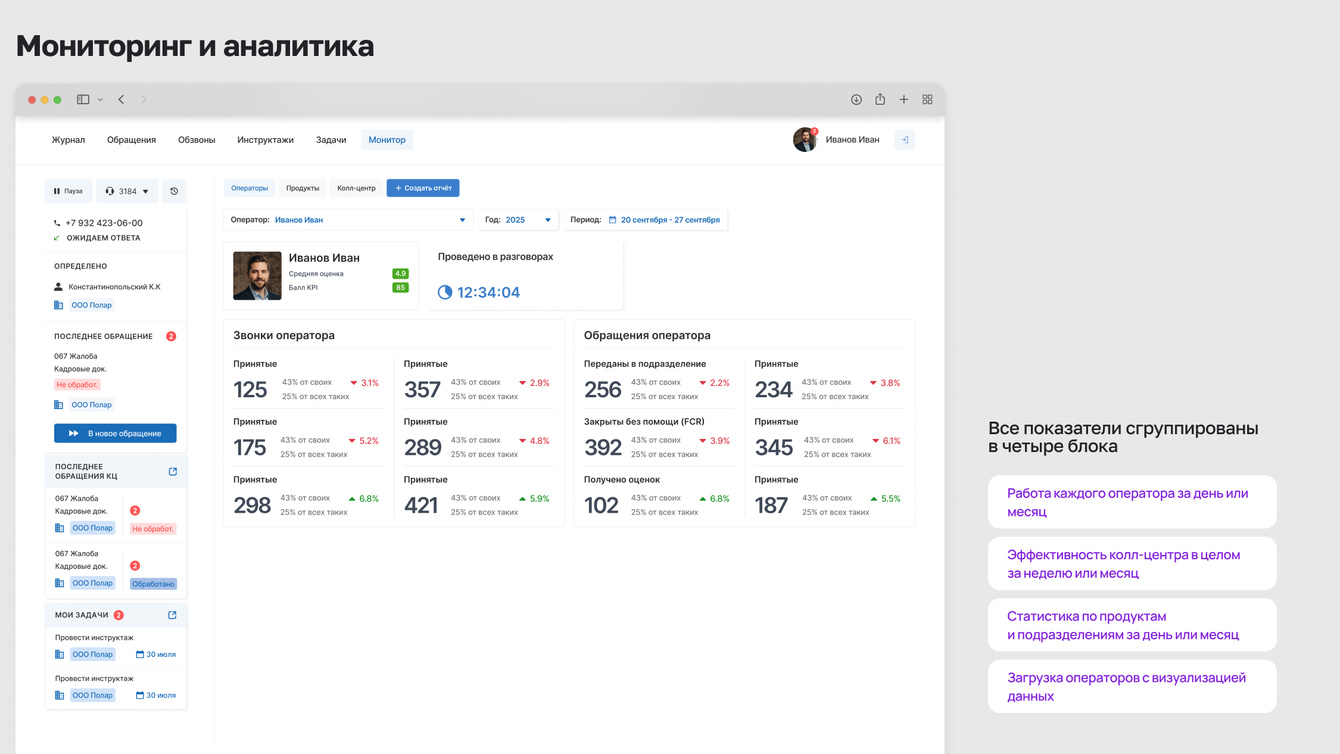 • Контроль качества — оценка работы операторов