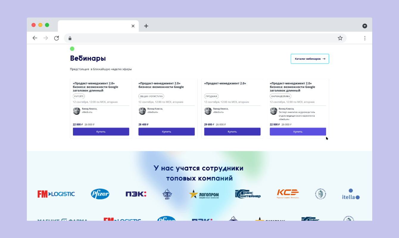 Была проведена интеграция с платформой Webinar.ru – российская платформа, лидер рынка интерактивных онлайн-трансляций.