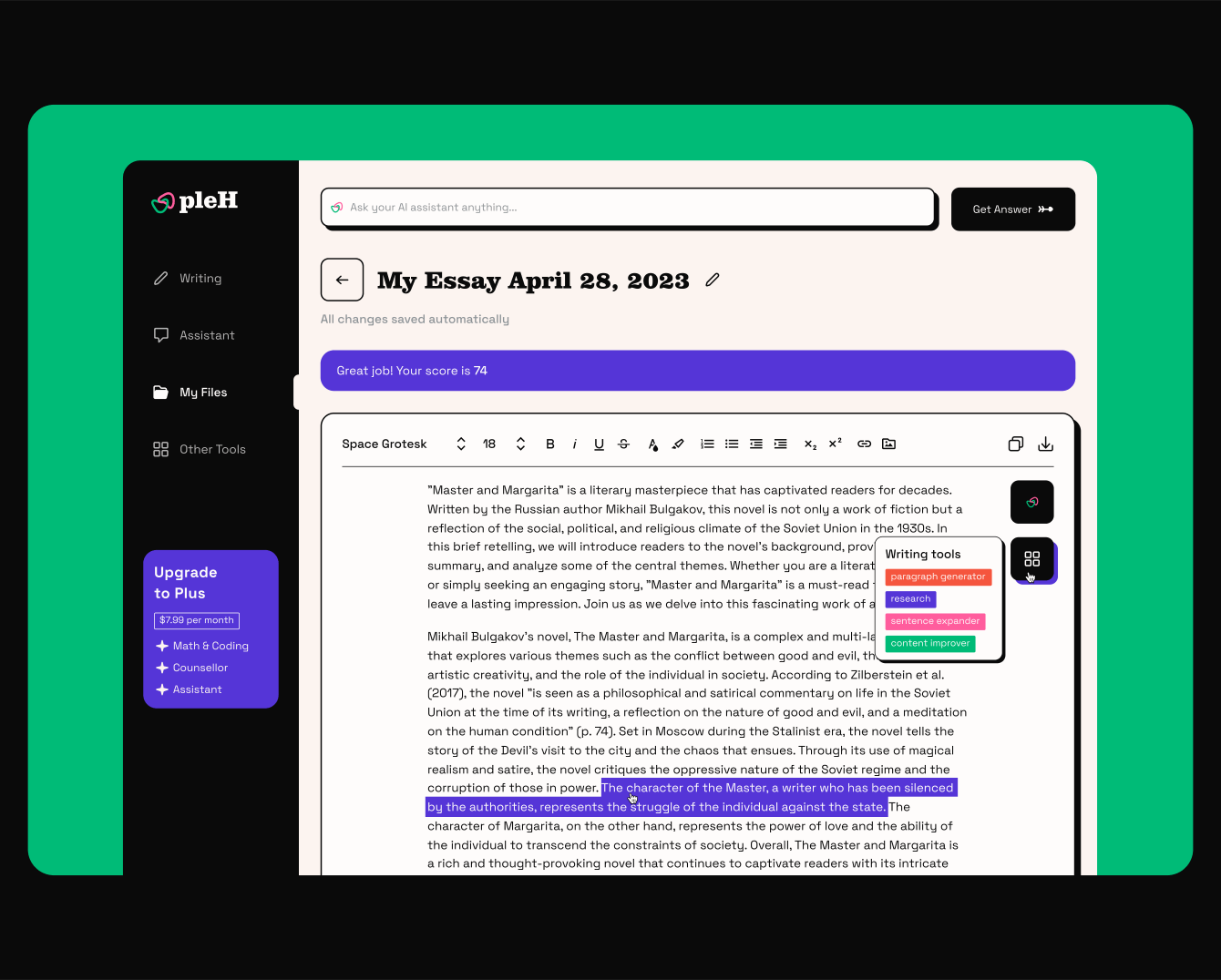 pleH — это инновационная образовательная платформа на базе искусственного интеллекта для студентов и профессоров со всего мира.