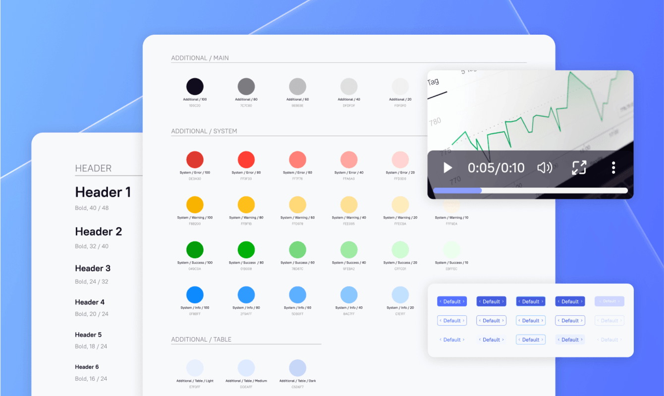Для начала проработали пользовательский путь и на основе прототипов заказчика создали масштабный UI-kit. Это позволило оптимизировать работу дизайнеров и перенести ресурсы с создания визуальной части компонентов на разработку структуры проекта.