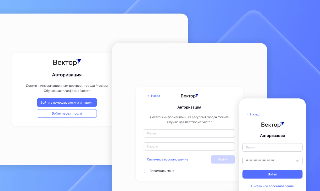 Нам нужно было обеспечить непрерывный доступ к функциям сервиса из ПК и мобильных устройств и при этом соблюсти требования по безопасности. А также сделать Vector удобным для пользователя.