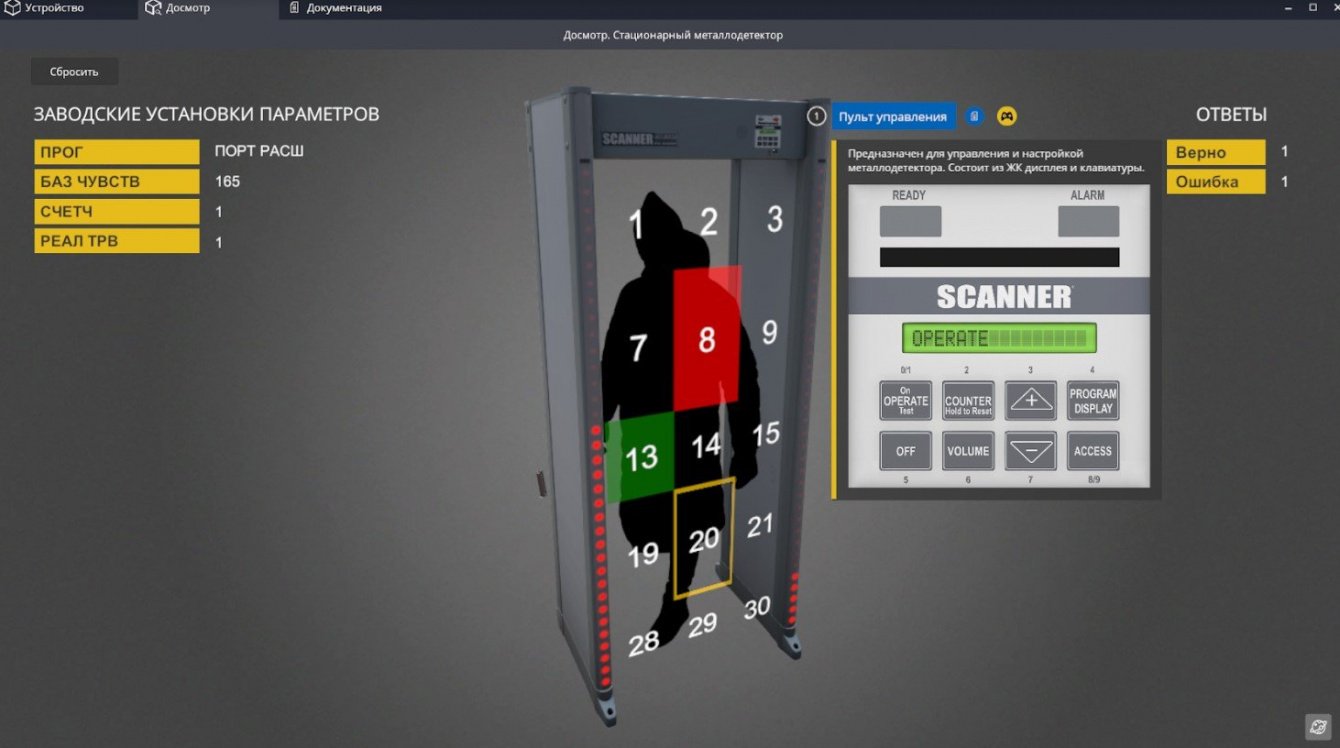 Создать симулятор работы металлодетектора для сотрудников охраны с целью обучения работы и эксплуатации