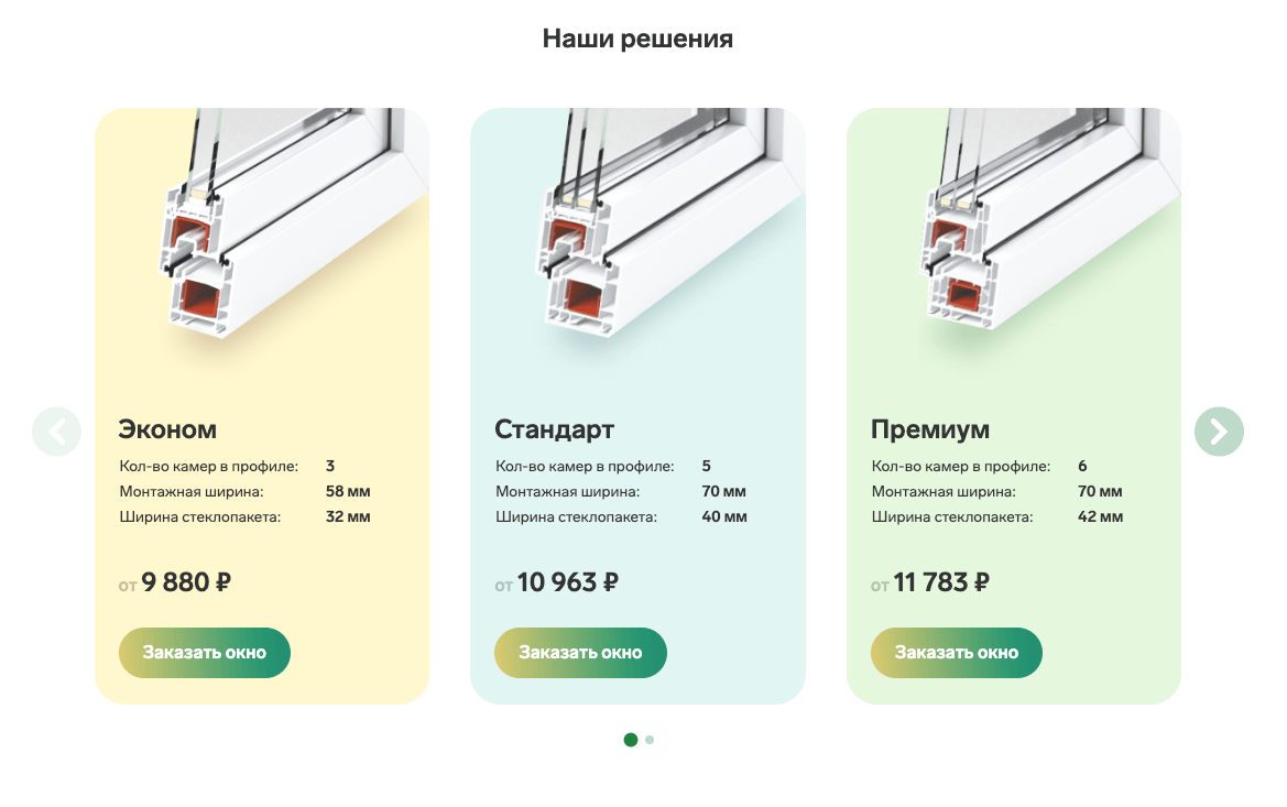 Представление «Оконики» в виде сервисной компании, которая заботится о клиенте на каждом шаге, требует от системы гибкости в плане конструирования посадочных страниц. Каждый блок на главной, каждый раздел и лендинг должен максимально быстро создаваться и настраиваться.