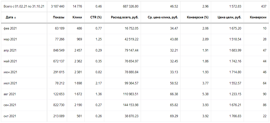 - Увеличили трафик на сайт и привели в 2,5 раза больше заявок при том же бюджете за счет снижения стоимости клика на 36% и снижения стоимости лида на 25%.