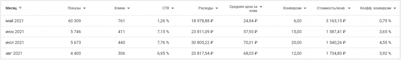 - Проработали семантическое ядро, собрав полную семантику по направлениям деятельности и разработали новые рекламные кампании в Яндексе и Google.