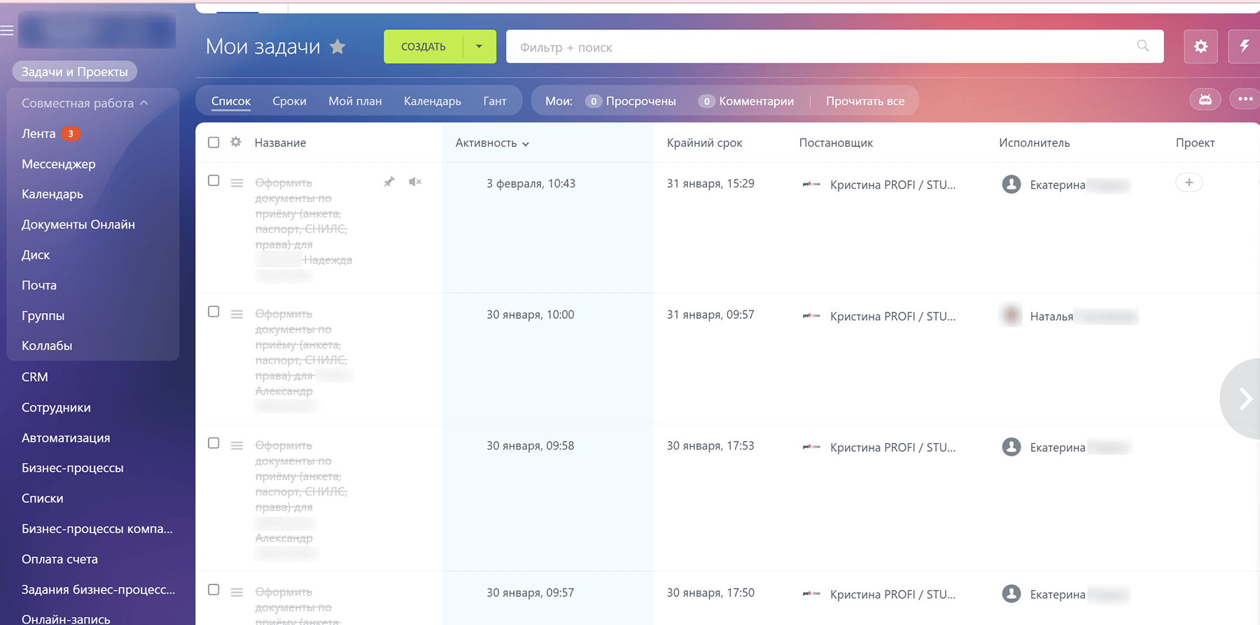 Все задачи находятся в одном месте, что очень удобно, чтобы проконтролировать их выполнение.
