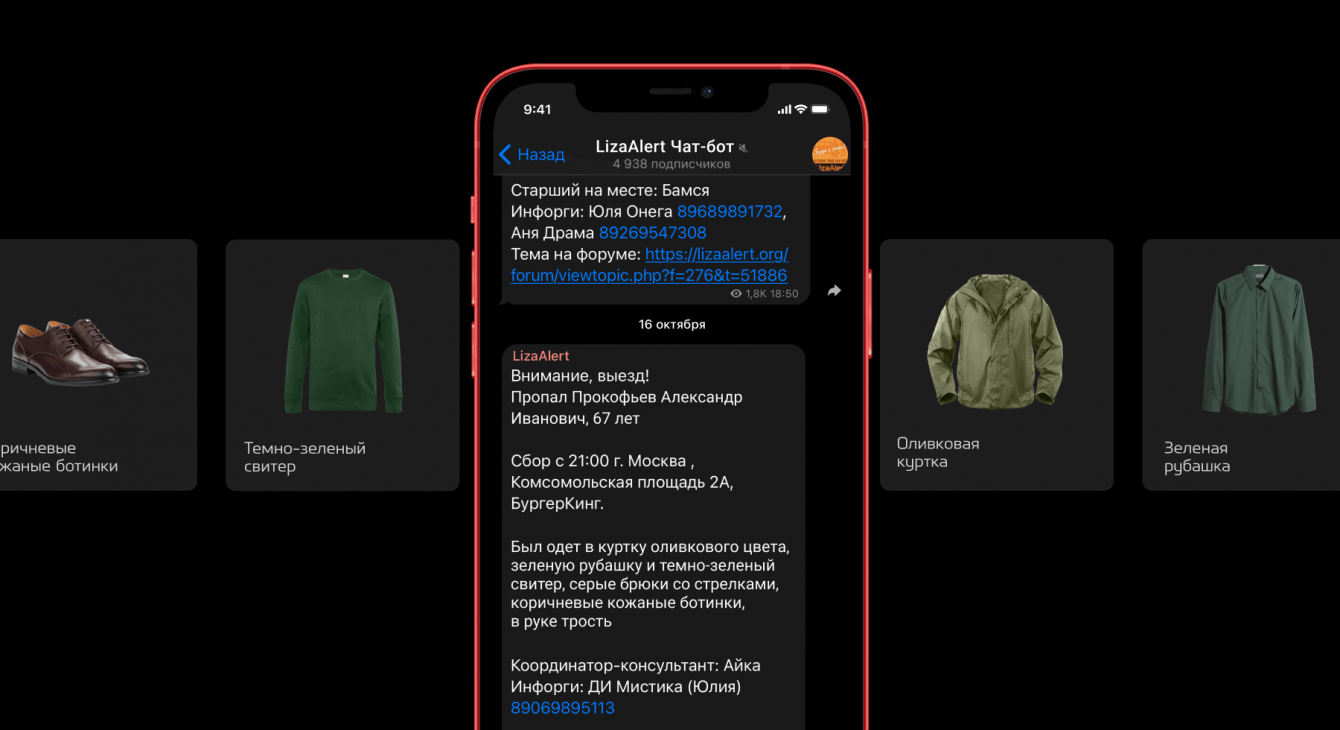 Несколько пропавших человек в день получает наш чат-бот для «переодевания». Свободные дизайнеры делают обновленную ориентировку пропавшего за 15-20 минут и направляют ее поисковой группе. За счет оперативности шансы найти человека в разы увеличиваются. Больше 1000 дизайнеров зарегистрированы в проекте.