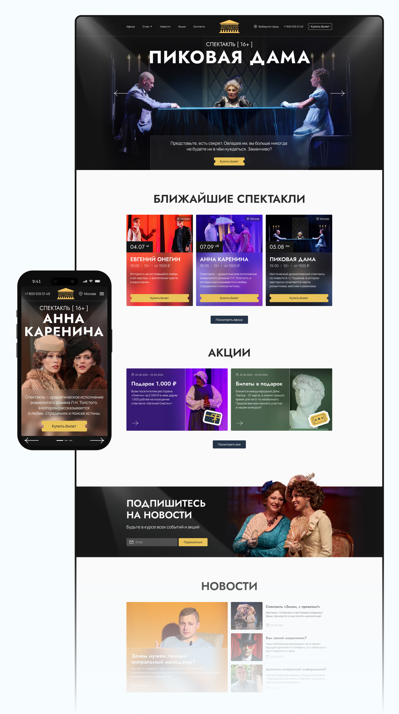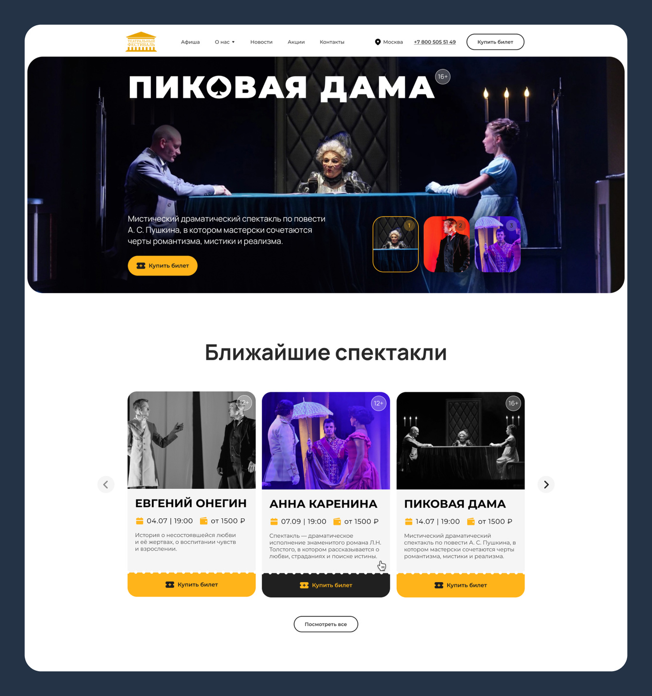 «Сайт получился атмосферным, но при этом очень прикладным: эмоция театра – в визуале, а продажа – в логике и навигации».