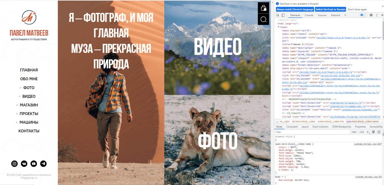 title “Официальный сайт тревел-блогера Матвеева Павла”;