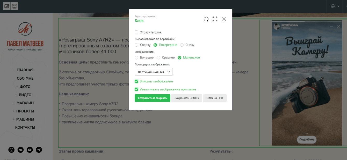 Благодаря команде веб-студии Megagroup.ru я реализовал свою давнишнюю идею объединить весь материал в одном месте и показать аудитории из разных сетей все, чем я хочу и готов делиться: здесь и путешествия, и работа с фотографией и реставрация машин, и магазин, в котором можно приобрести мои книги и специальные рюкзаки для фототехники. Спасибо PR-менеджеру Галицкой Евгении за ее предложение реализовать эту идею с веб-студией Megagroup.ru, результат превзошел мои ожидания.