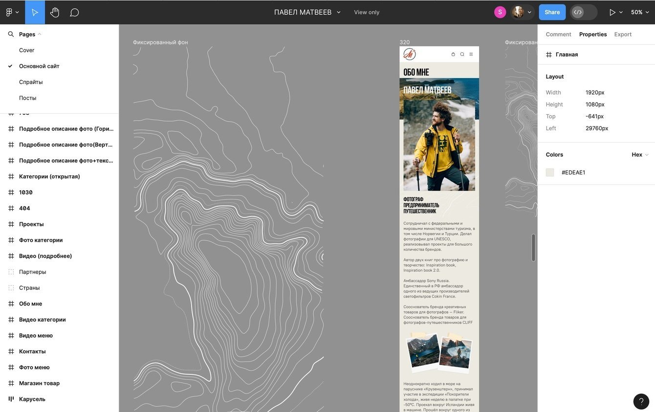 Особенностью дизайна мы бы хотели назвать топографический след, который лег в основу фиксированного фона на сайте, выделив тематику путешествий.