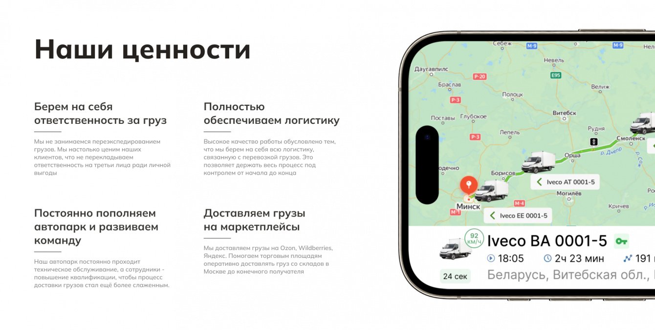 Целью проекта было создание современного и стильного одностраничного сайта для компании РК Транспорт. Сайт должен был визуально подчеркнуть высокое качество предоставляемых услуг, с акцентом на минималистичный дизайн и транспортные средства, используемые компанией.