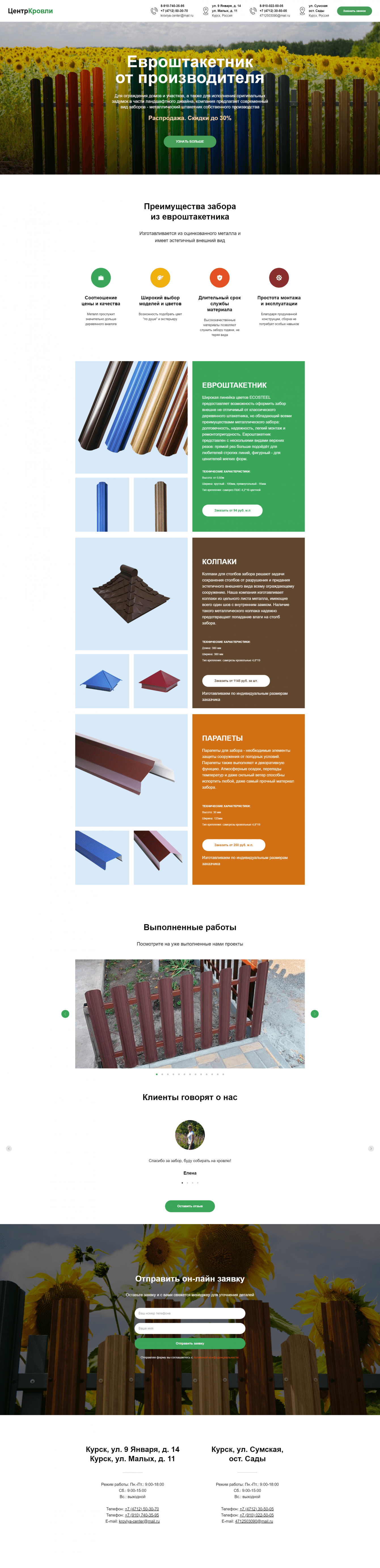 В рамках расширения ассортимента продукции Центр Кровли запустил новый проект – производство евроштакетника. Для продвижения этого продукта был создан одностраничный сайт, который максимально эффективно представляет преимущества нового товара и упрощает процесс заказа для клиентов.