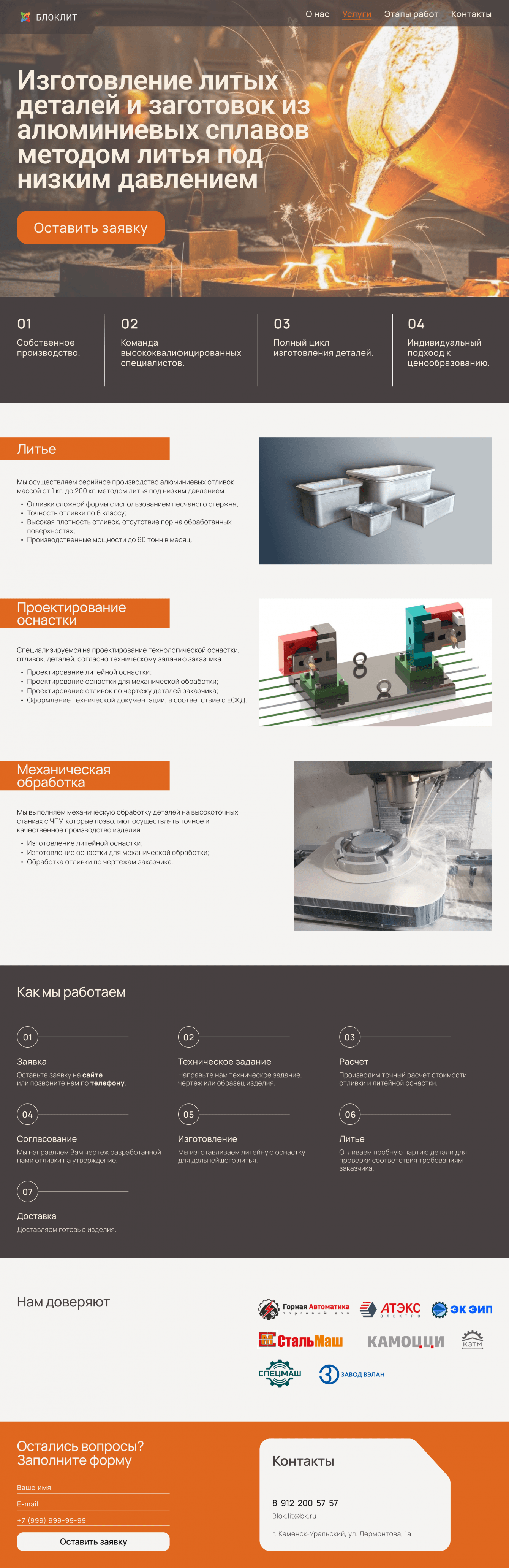 Разработать лендинг для литейной компании