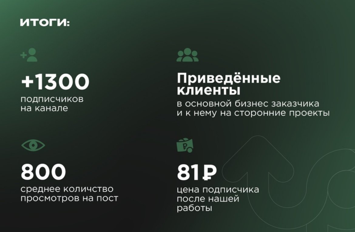 В первый месяц, благодаря цепляющему креативу, получилось привести 220 подписчиков по 162 рубля. В следующий месяц была проведена корректировка подобранных каналов и цена подписчика снизилась до 102р. Креатив, который показал этот результат