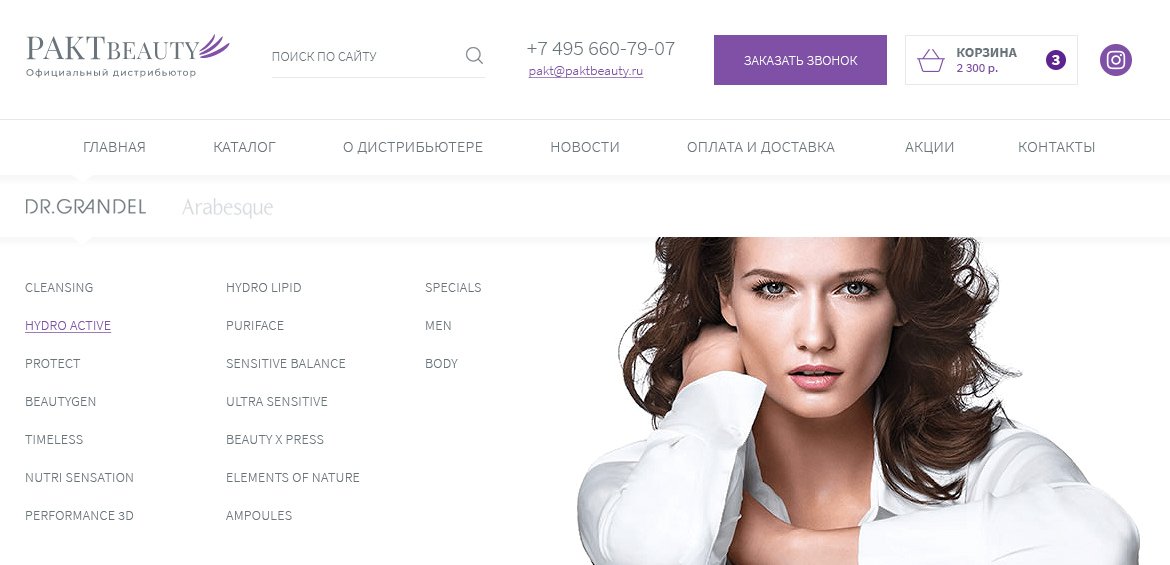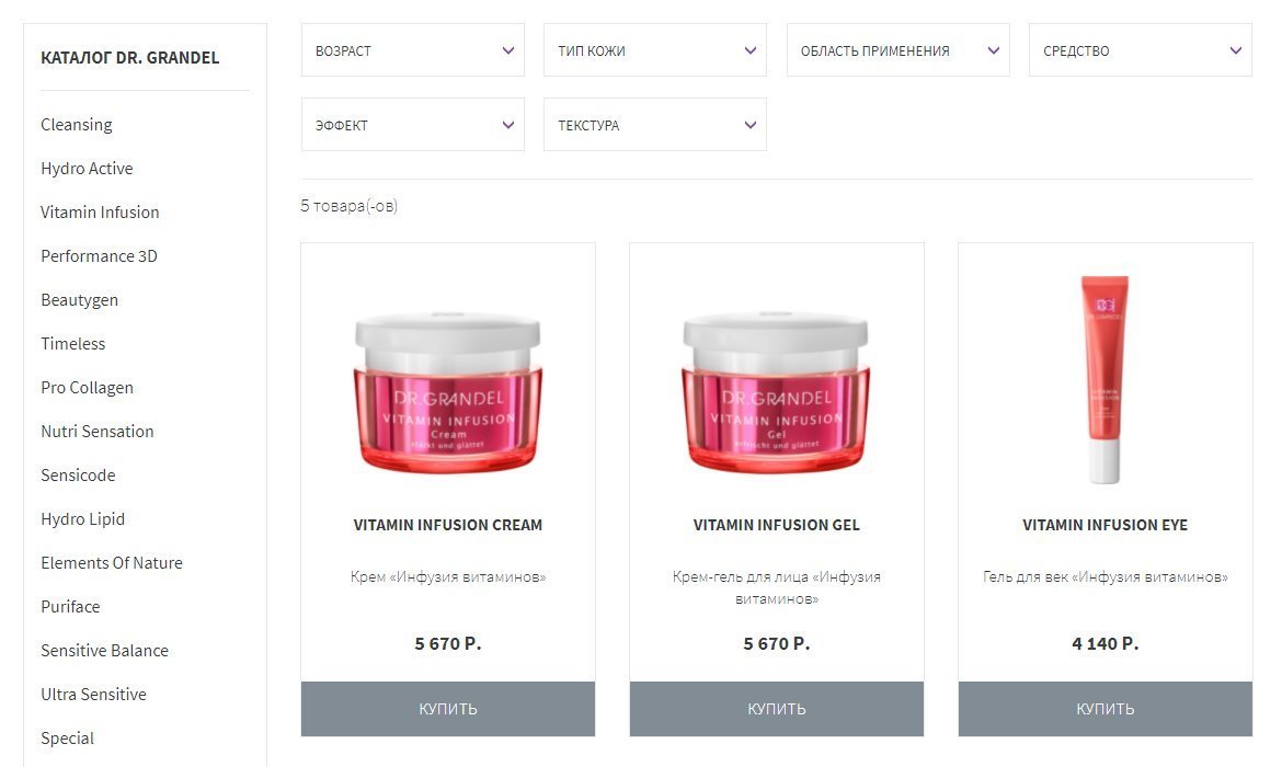 - На сайте для косметологов отсутствуют цены и возможность покупки товара