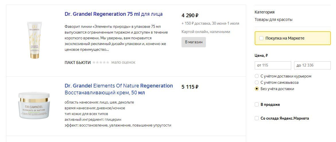 Настроили автоматическую выгрузку товаров в Яндекс.Маркет через генерацию YML-файла. Успешно прошли модерацию интернет-магазина. Настроили цели в Яндекс.Метрике. Как оказалось, каждый третий посетитель с Яндекс.Маркета совершает заказ в интернет-магазине. Стоимость 1 перехода около 10 руб. Управление ставками автоматизировано через программу Pricelabs.