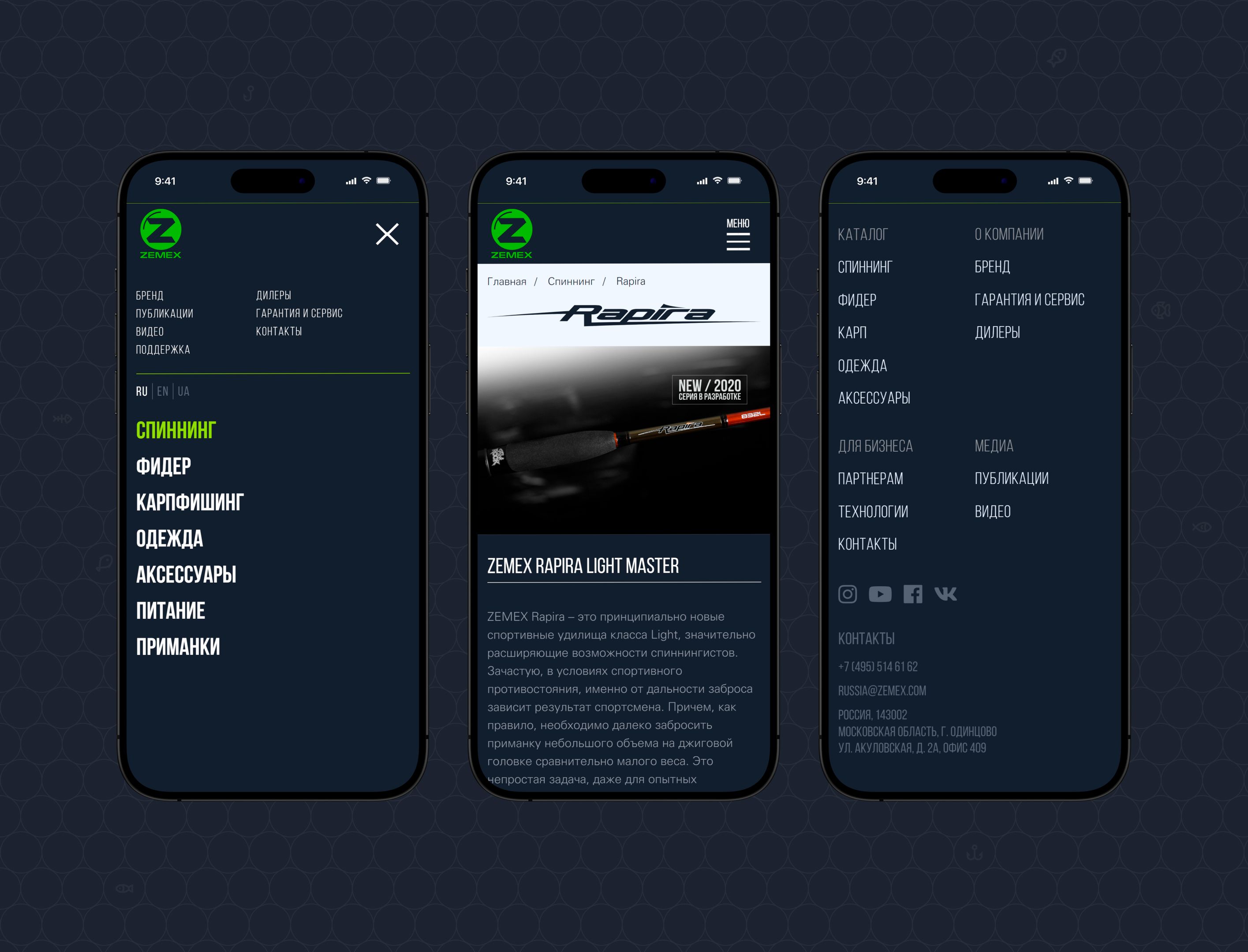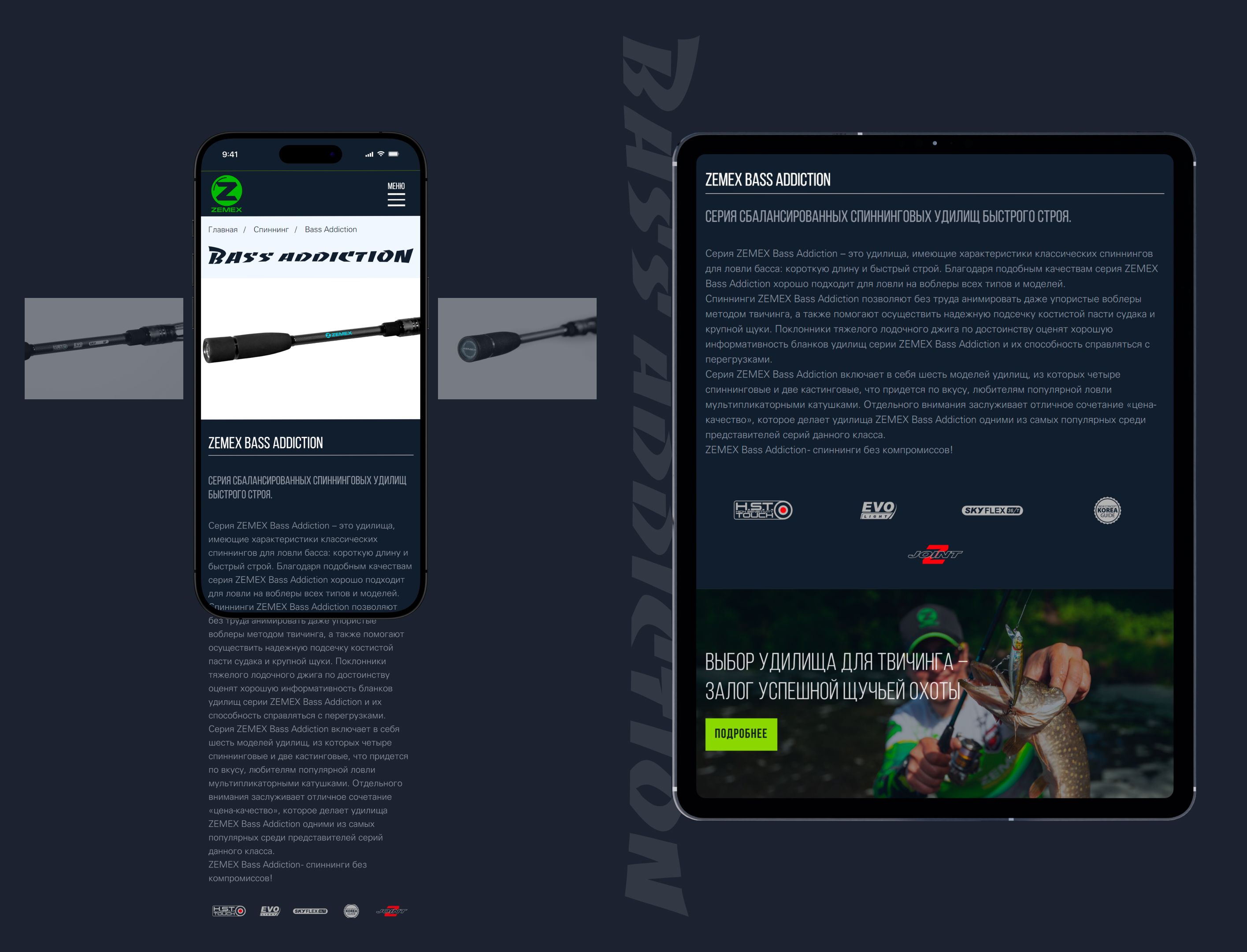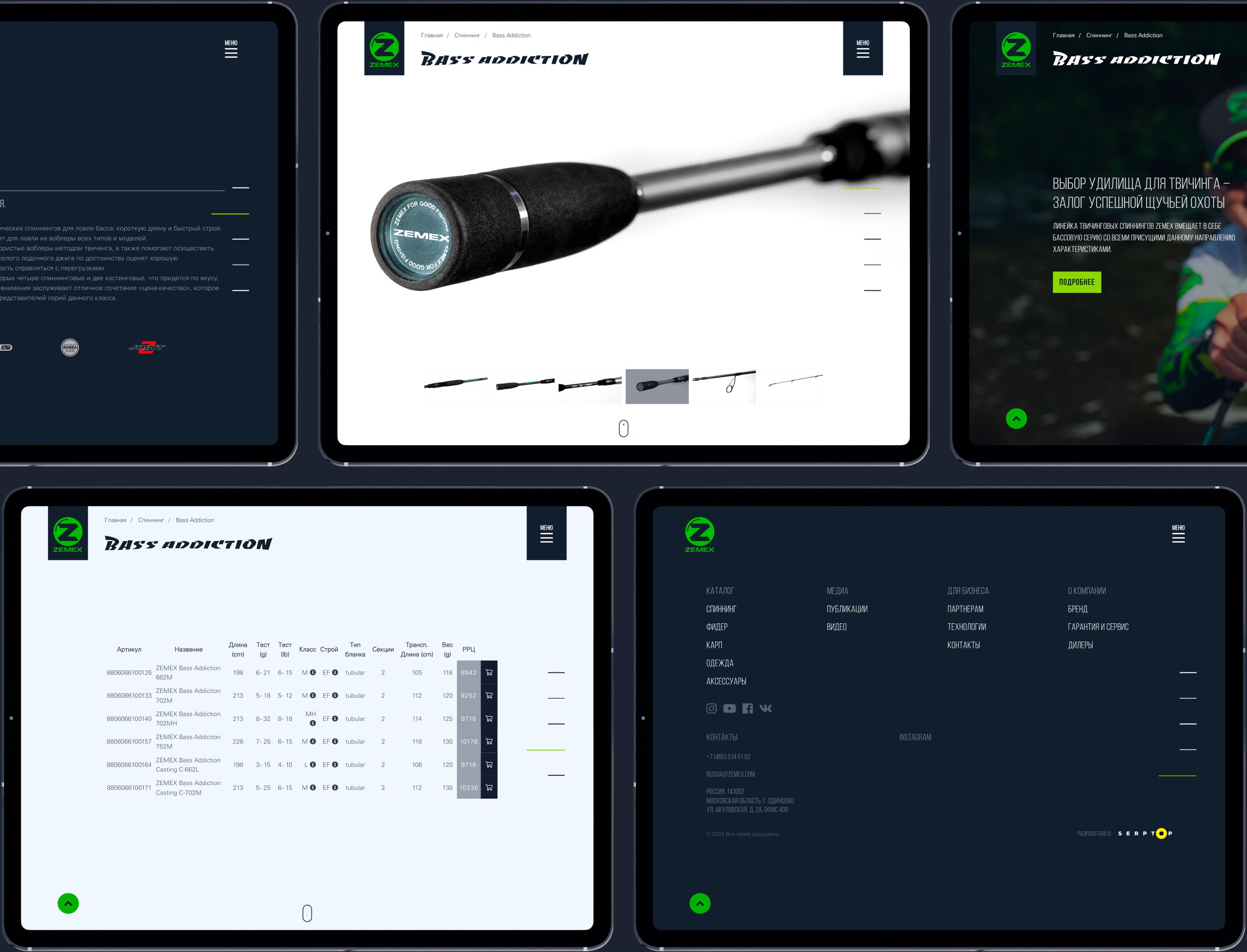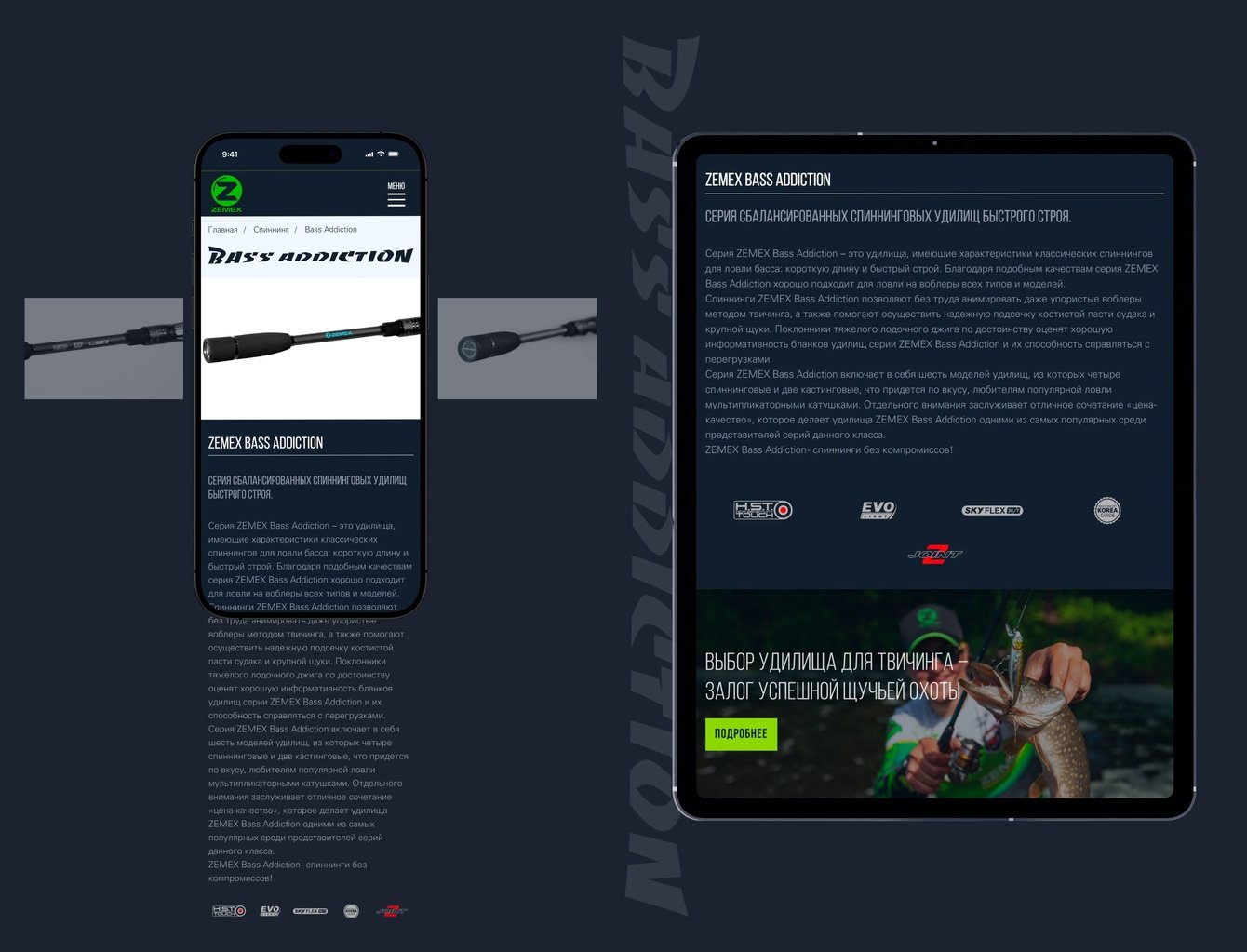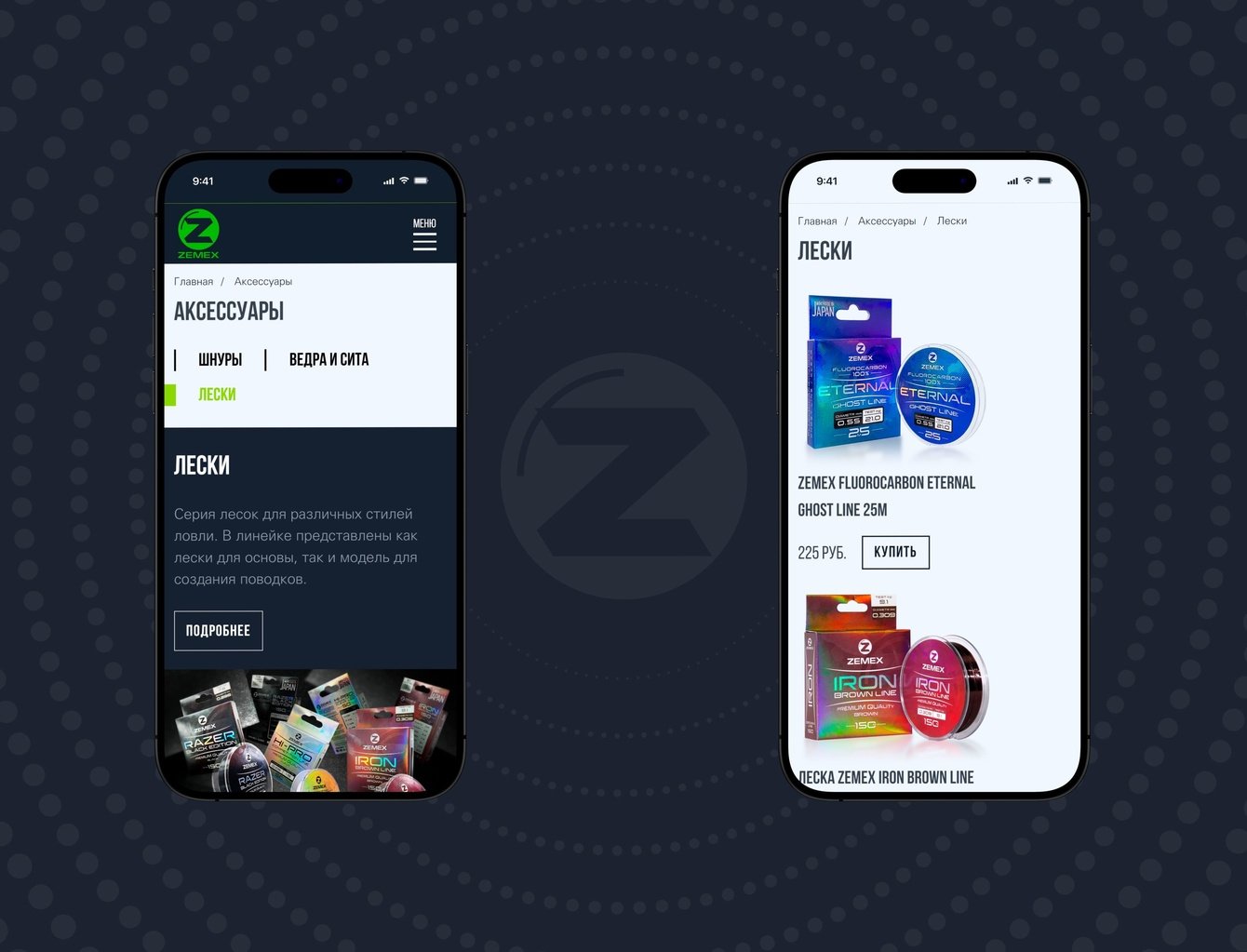 Разработка многостраничного сайта и интернет-магазина для бренда “Zemex” и других товаров для рыбной ловли. Сайт должен предоставлять информацию для частных клиентов и деловых партнёров, а также включать функционал для покупок и образовательного контента.