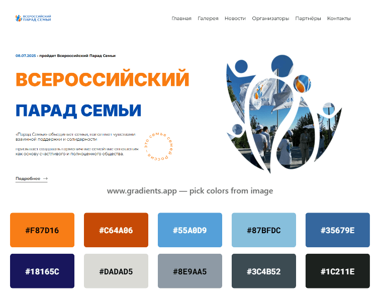 Появился понятный сайт‑путеводитель: афиша, карта, участие и ответы на вопросы собраны в логичную цепочку. Живые фотографии и короткие цитаты добавляют ощущение праздника, цветовые акценты мягко ведут к ключевым действиям.