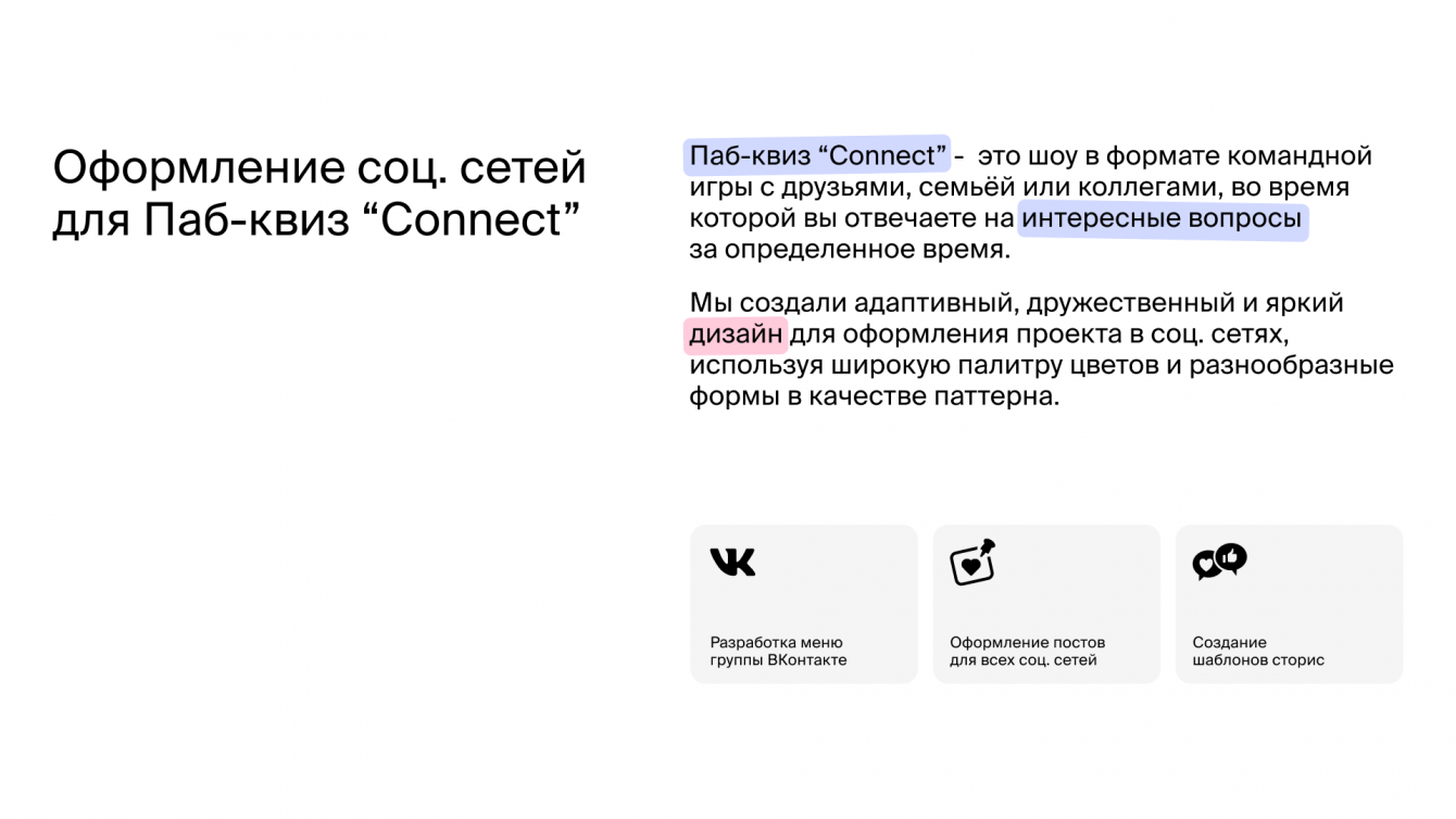 Создать адаптивный, дружественный и яркий дизайн для оформления проекта в соц. сетях