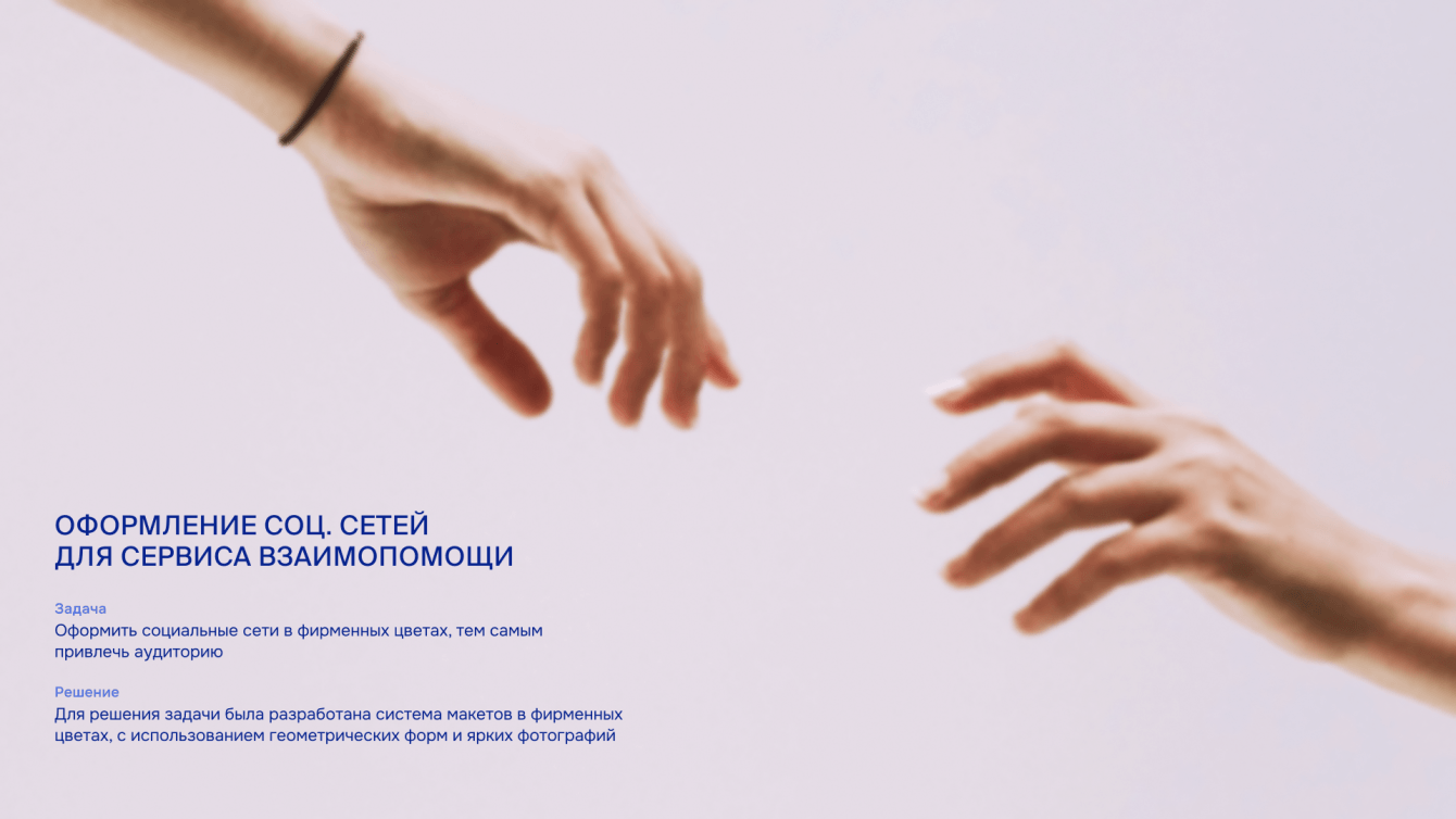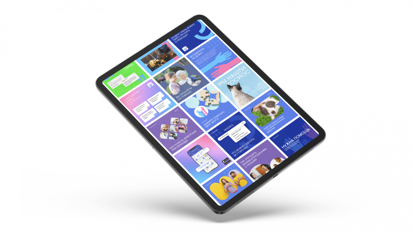Для решения задачи была разработана система макетов в фирменных цветах, с использованием геометрических форм и ярких фотографий