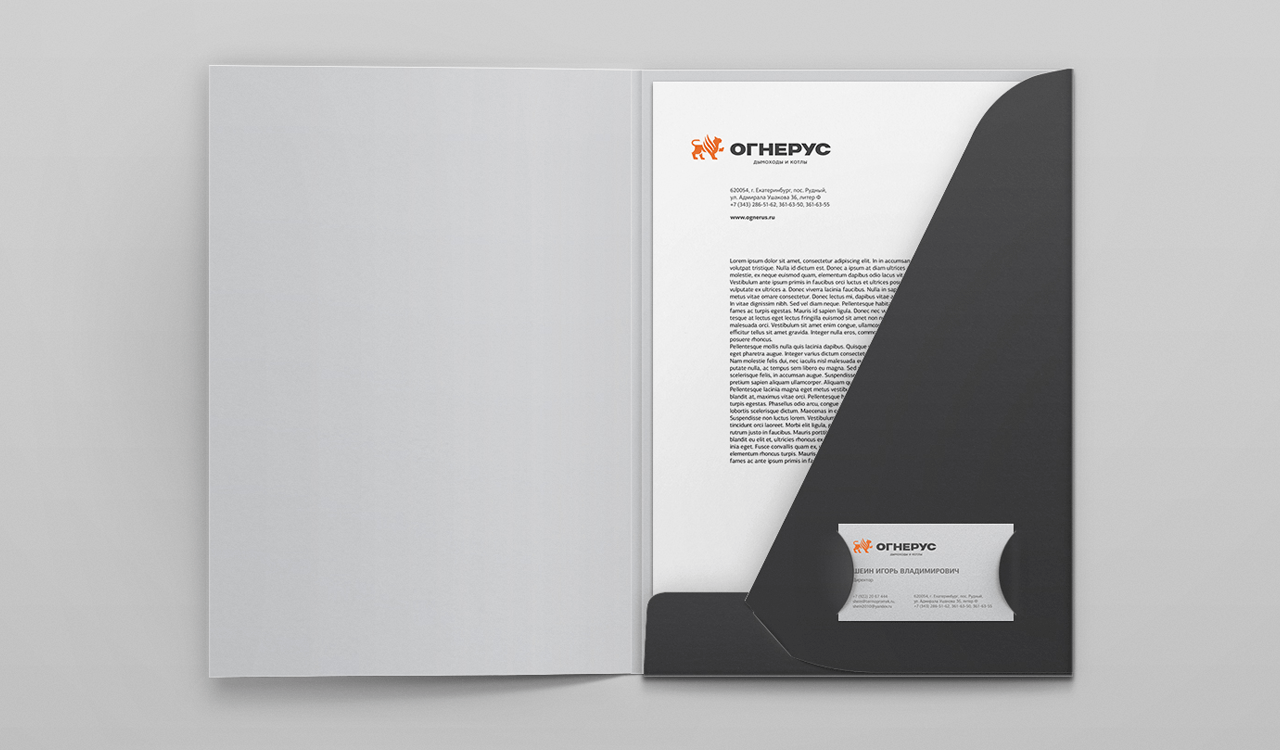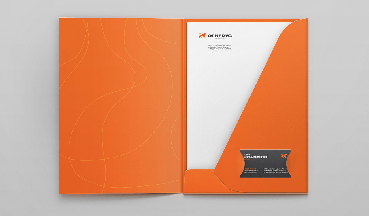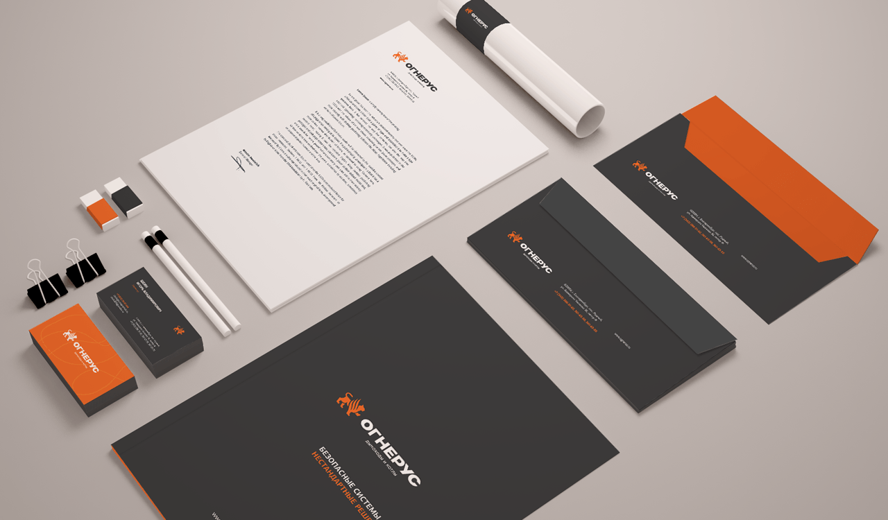 Для проекта было разработано охраноспособное название «Огнерус». Это слово расшифровывается как «Русский огонь». Семантика названия указывает на сферу деятельности компании. «Огнерус» легко произносится и запоминается, при этом выделяется среди конкурентов.
